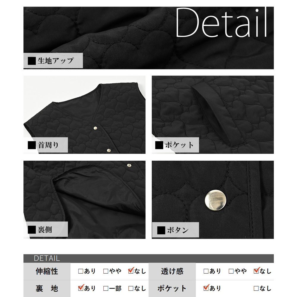 • 着膨れしないライトデザインのハート柄キルトベスト6