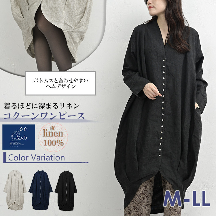 ナチュラルで上品な雰囲気が魅力のコクーンワンピース
