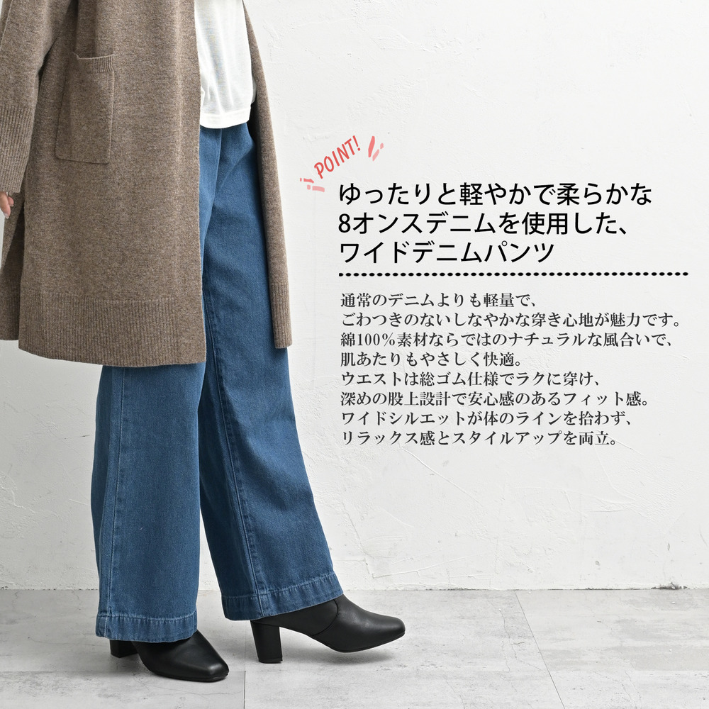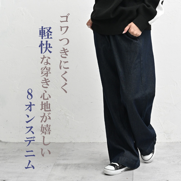 ゴワつかず軽快な穿き心地のワイドデニムパンツ