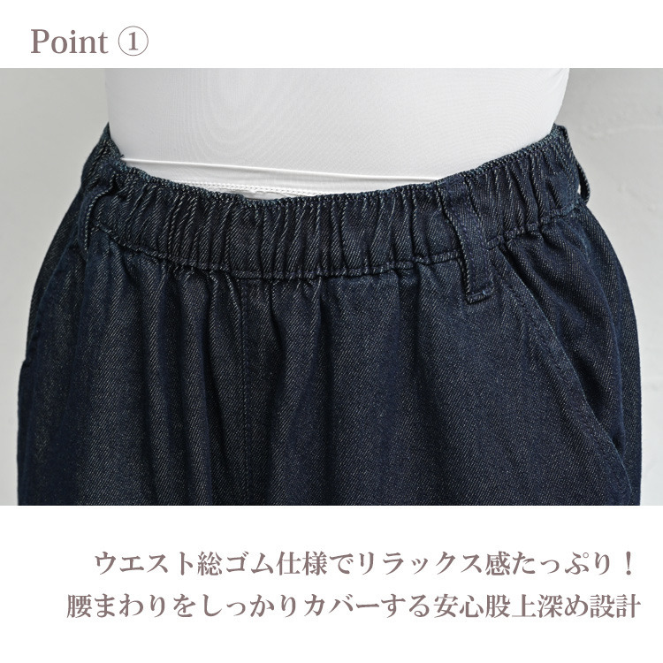 ウエスト総ゴム仕様でラクに穿けて