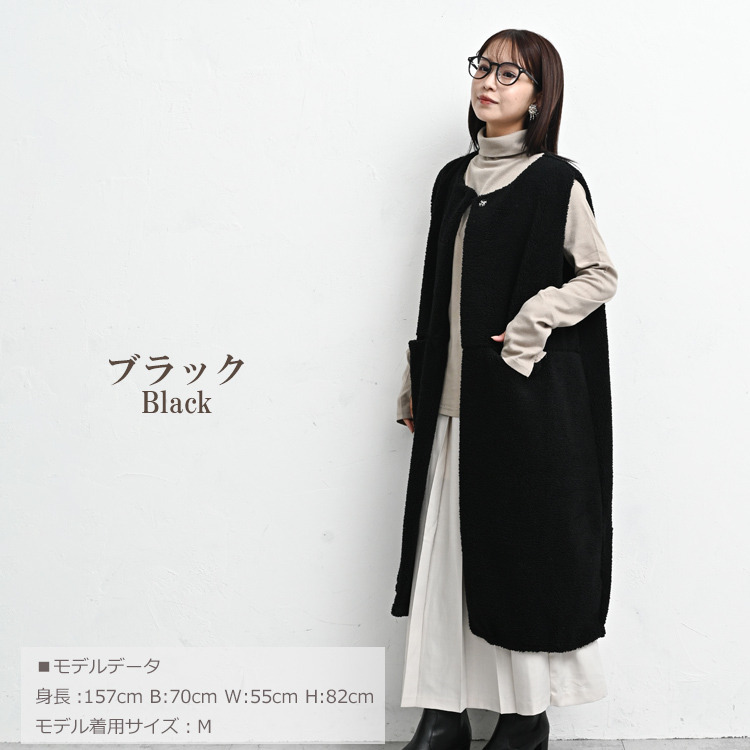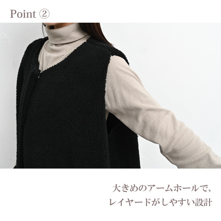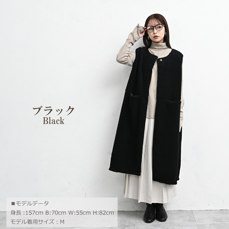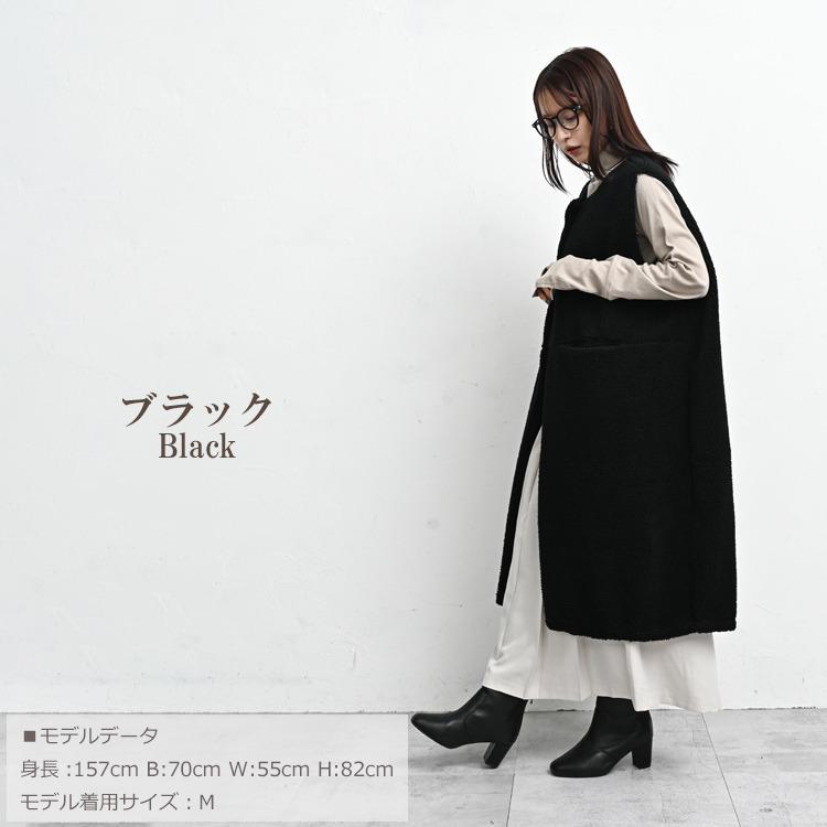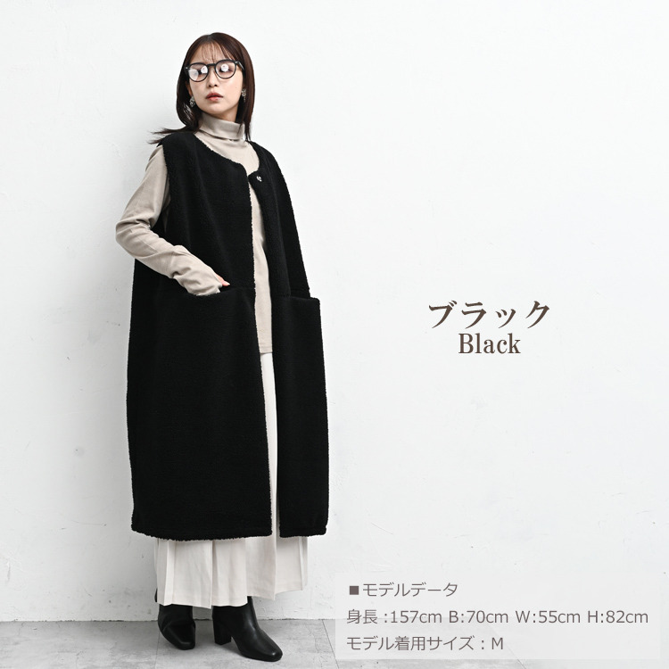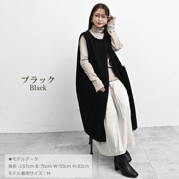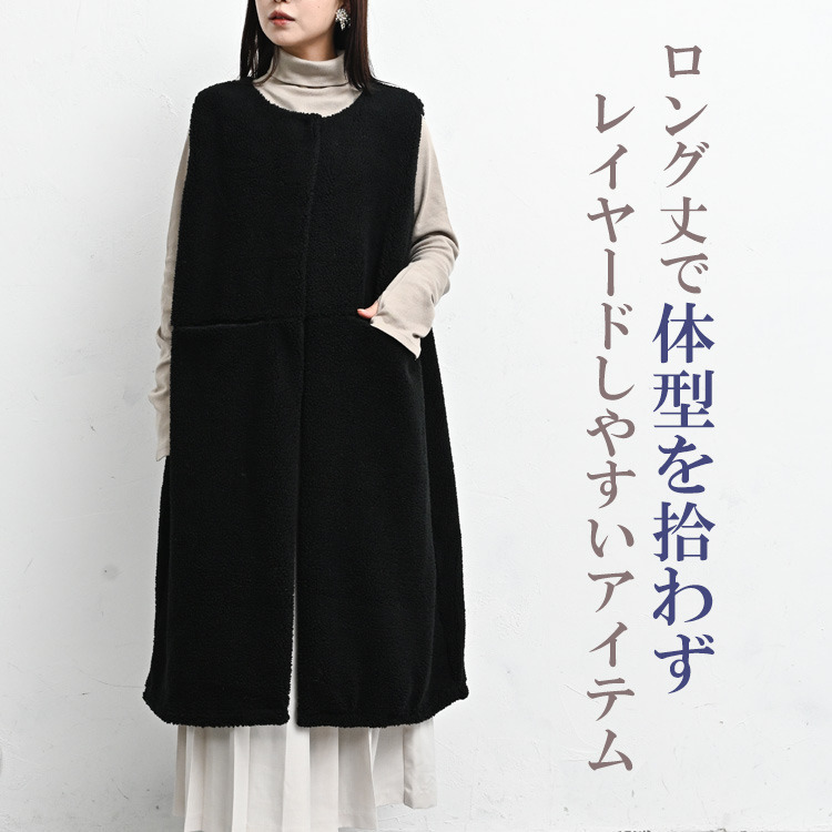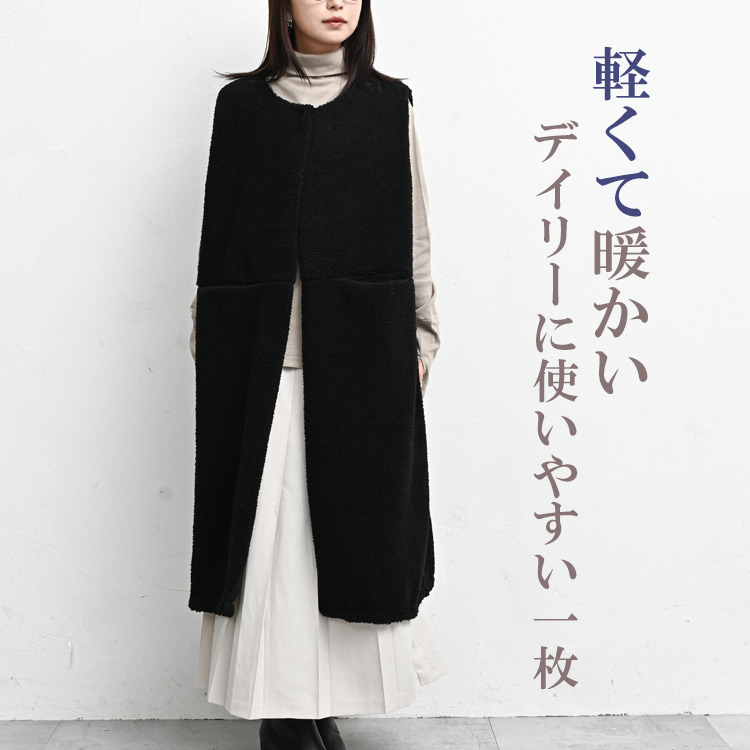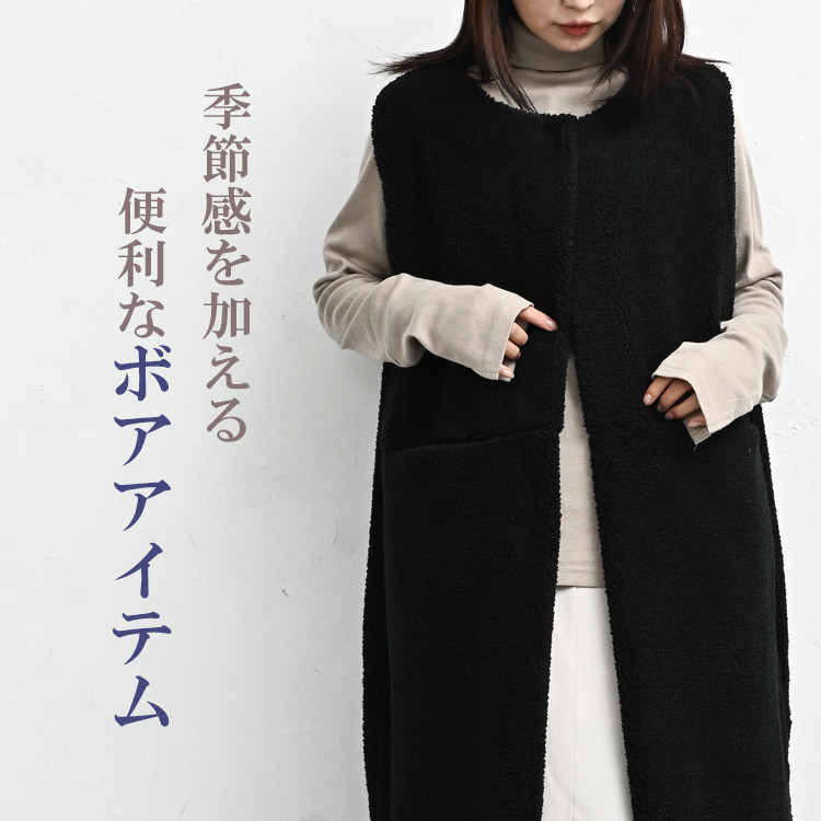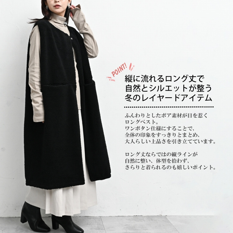 冬の着こなしに優しい表情をプラスするボアロングベスト