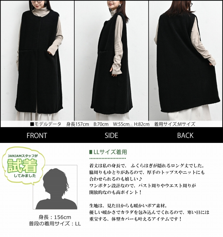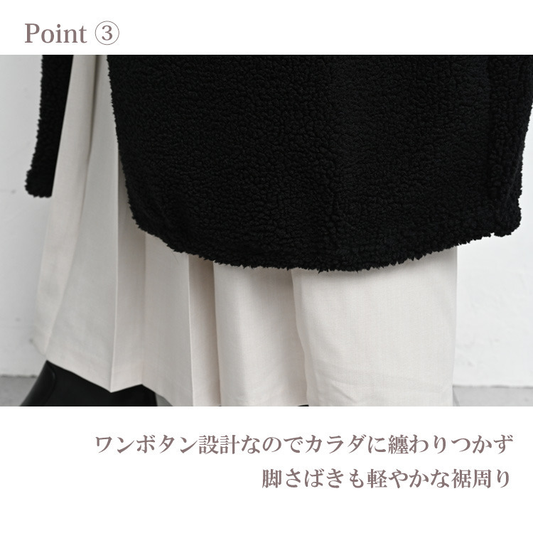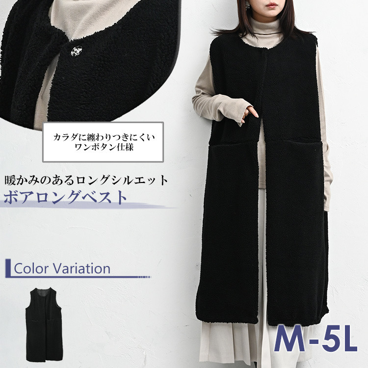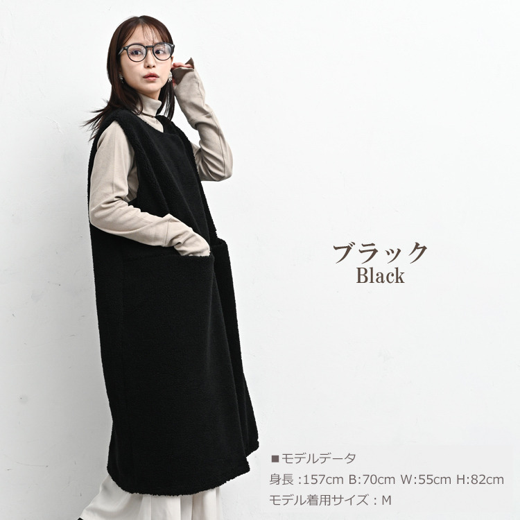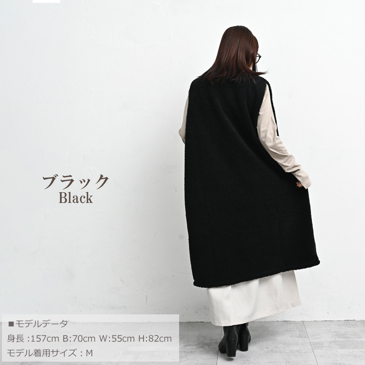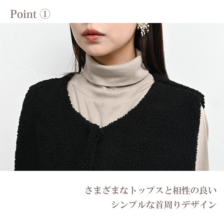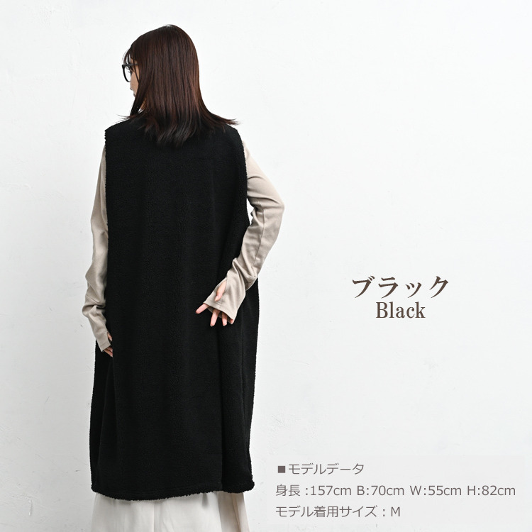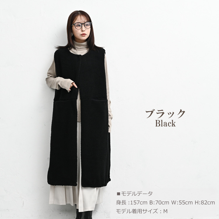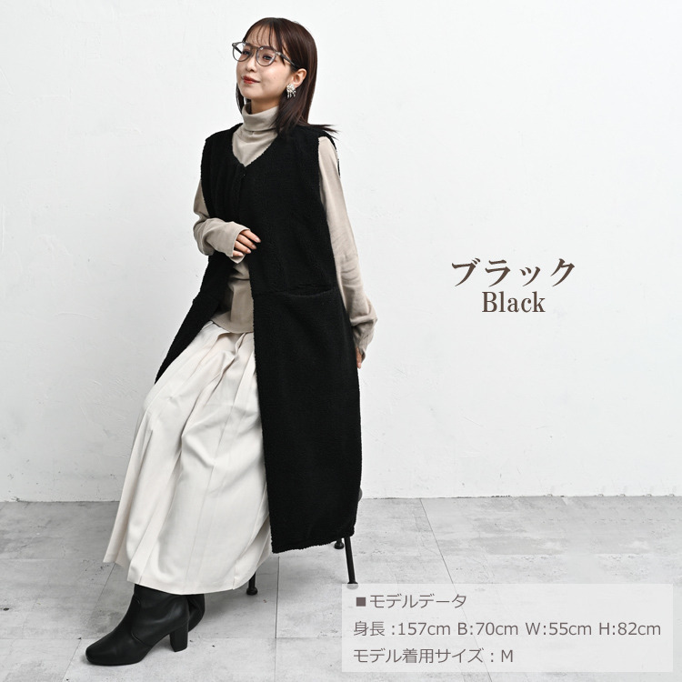 冬の着こなしに優しい表情をプラスするボアロングベスト
