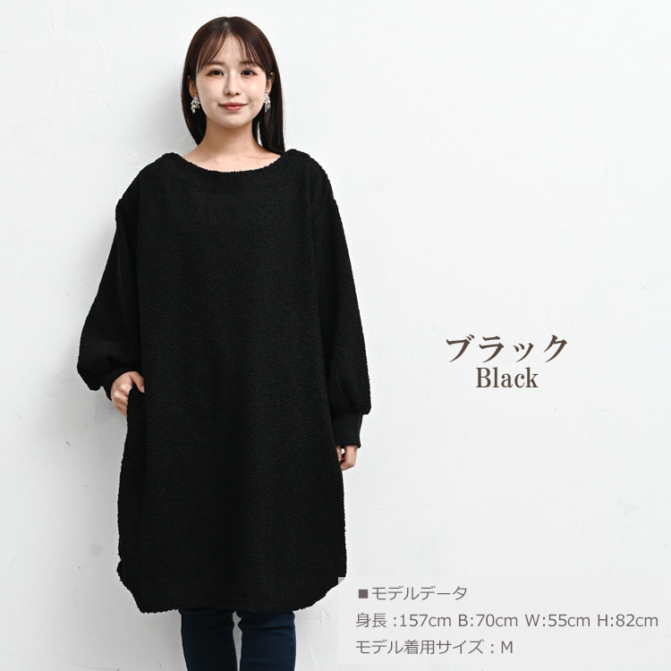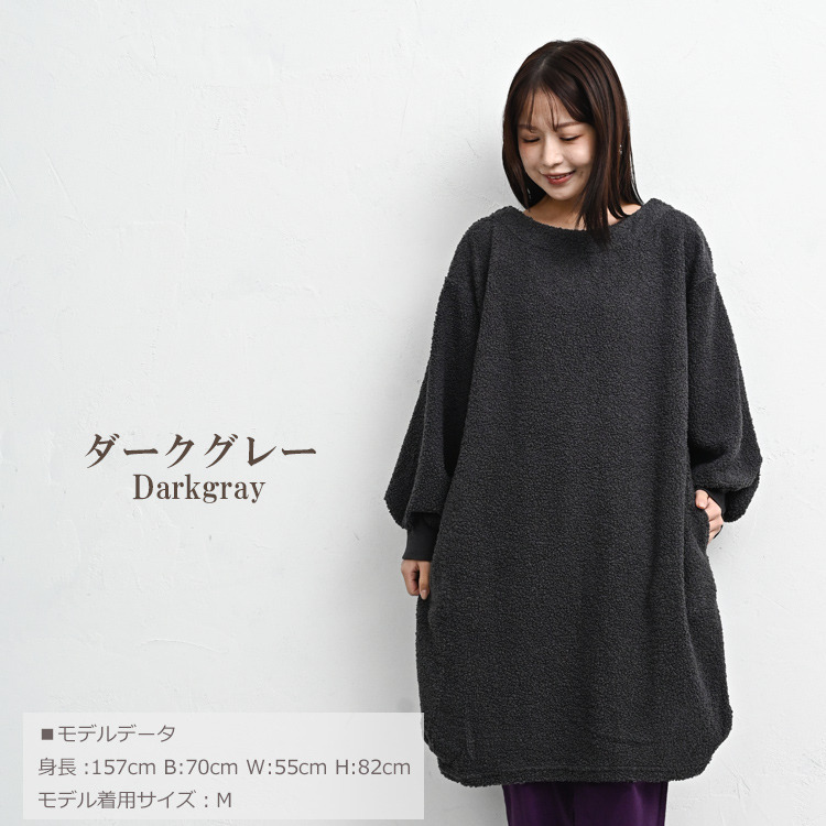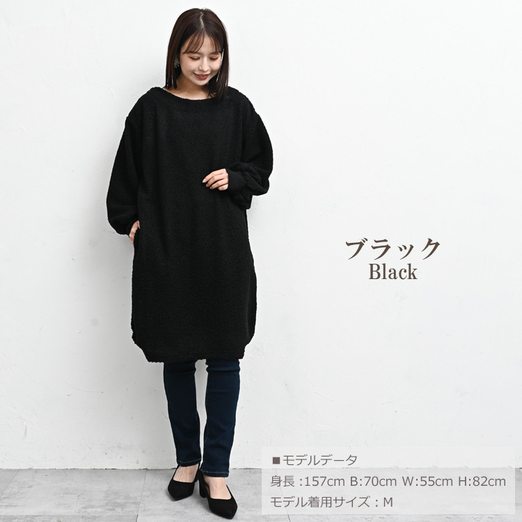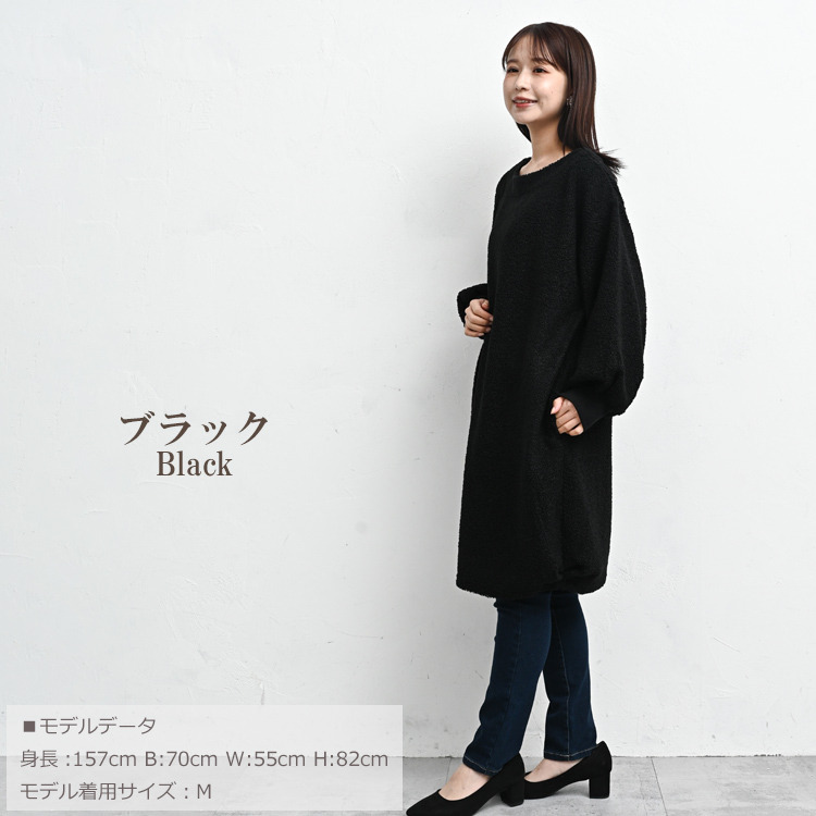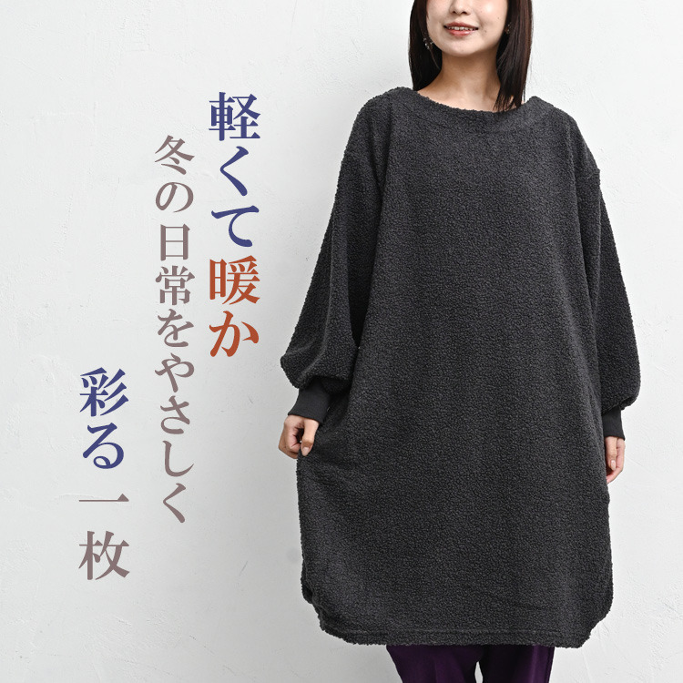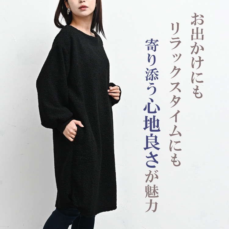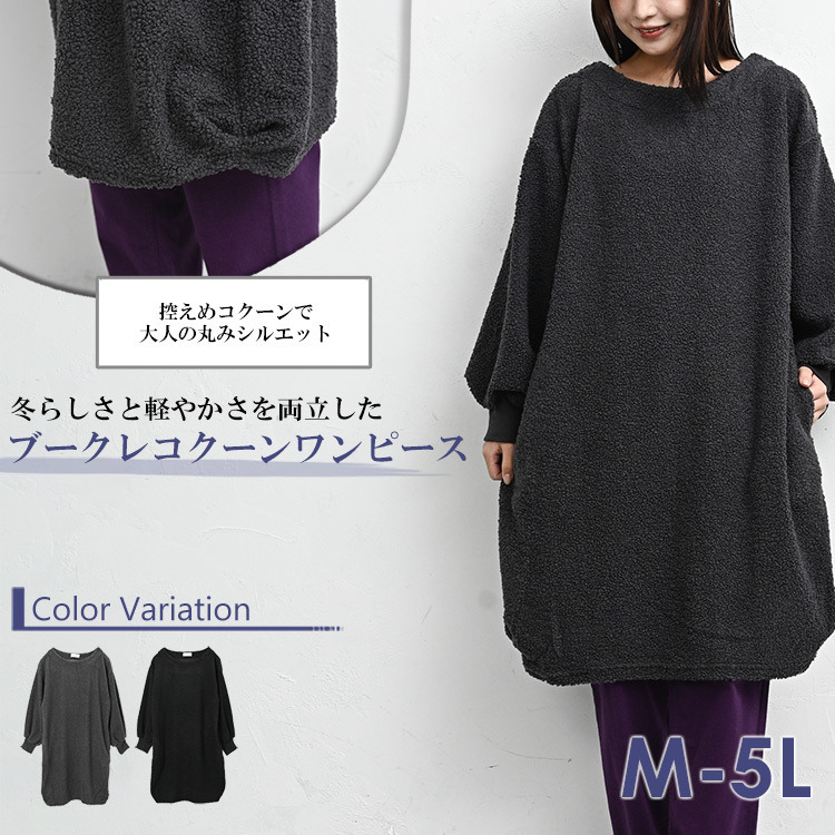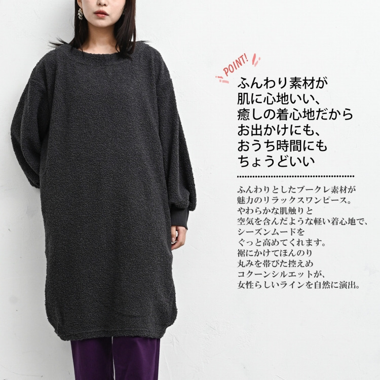 ふんわり素材に包まれるブークレニットコクーンワンピース