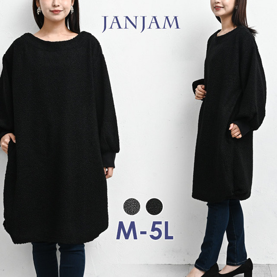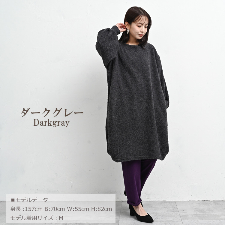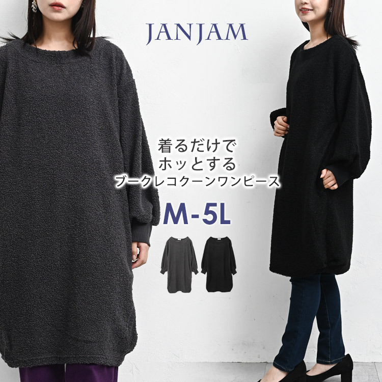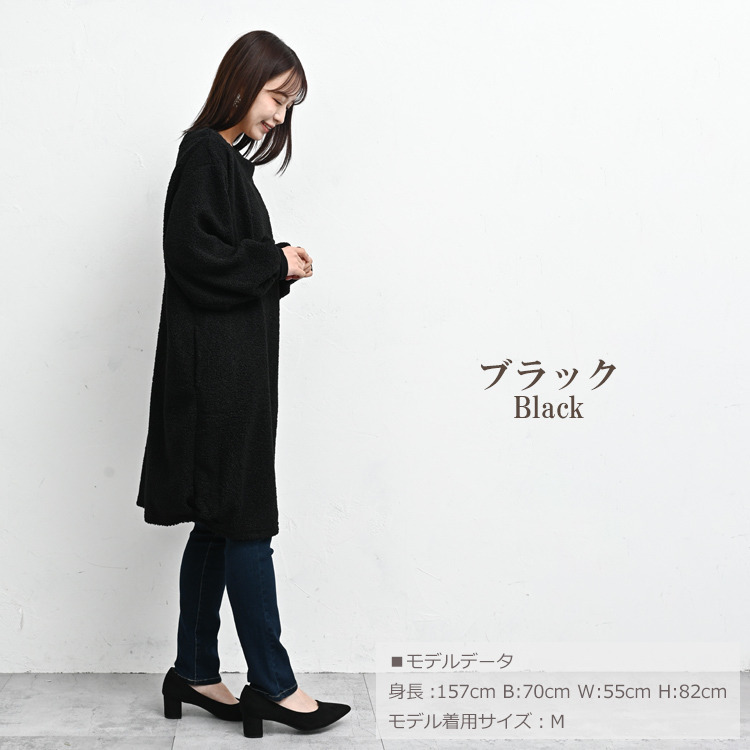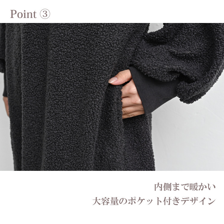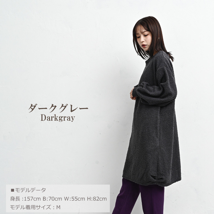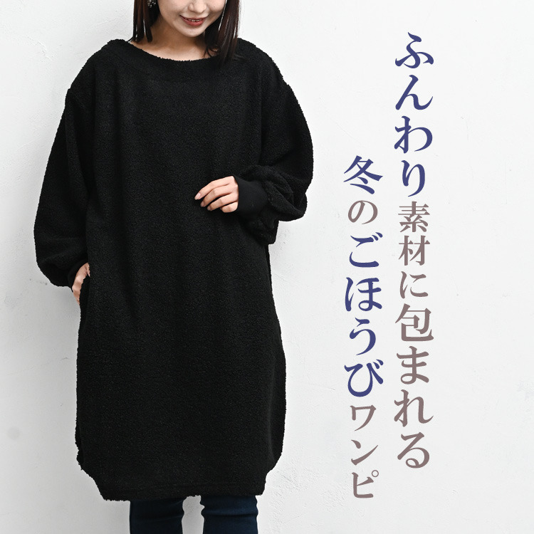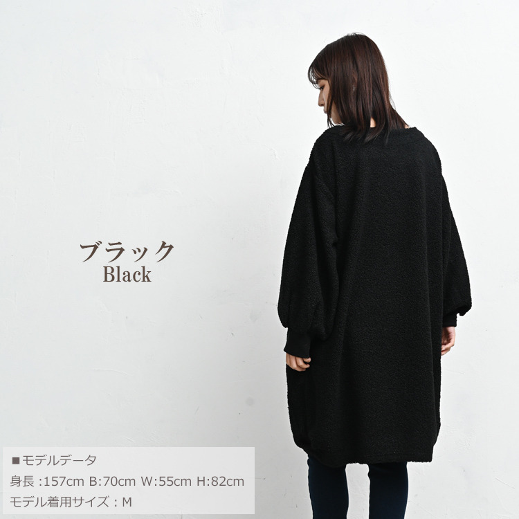 ふんわり素材に包まれるブークレニットコクーンワンピース
