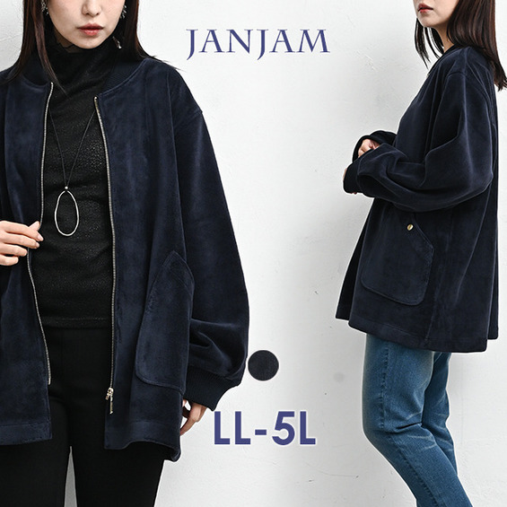 高級感溢れるベルベット調ミドル丈ブルゾン
