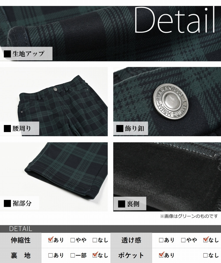 | 素材 | 表側:ポリエステル90%、ポリウレタン10% 裏側:ポリエステル95%、ポリウレタン5% |