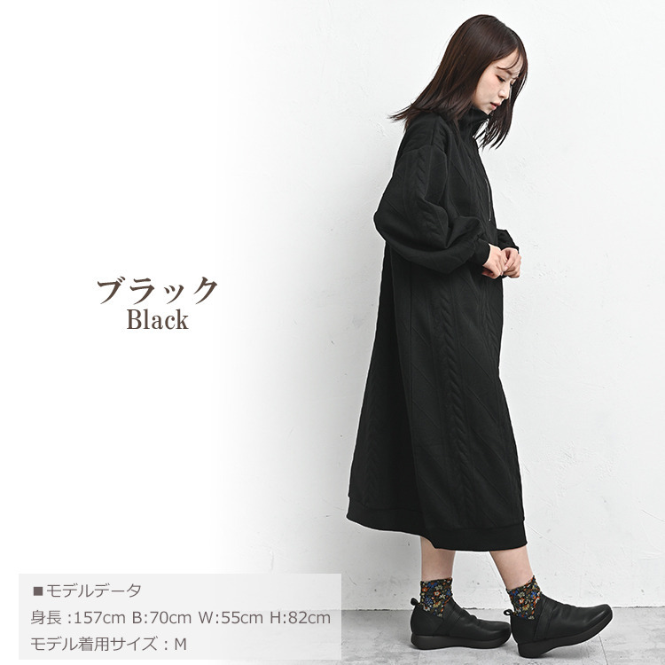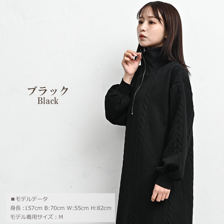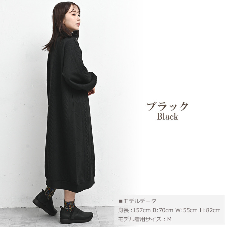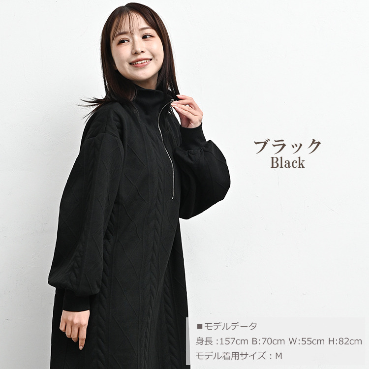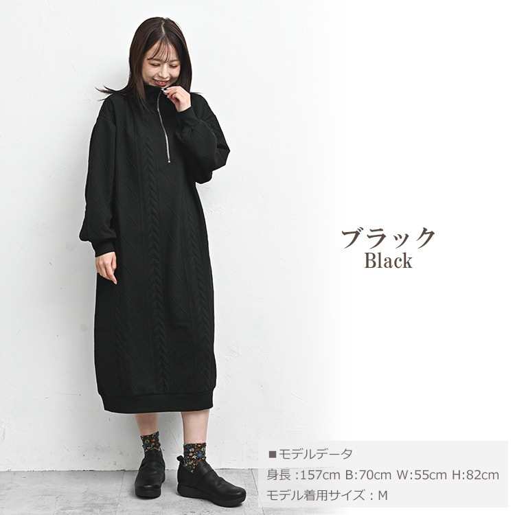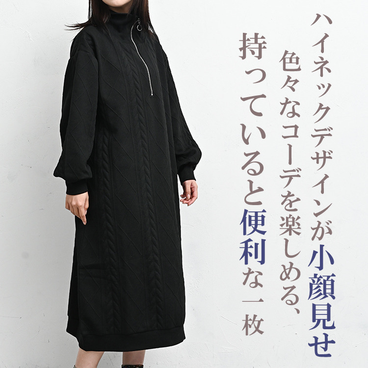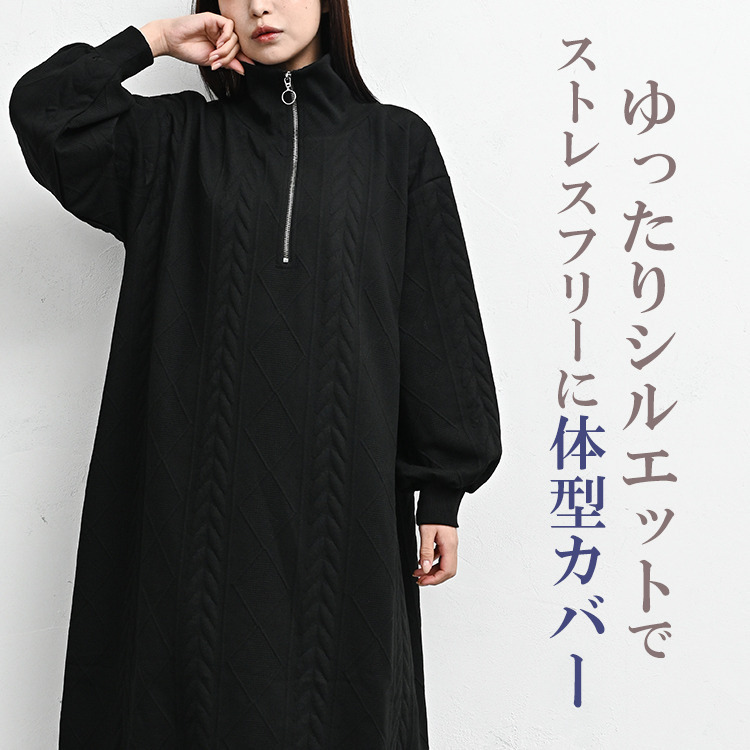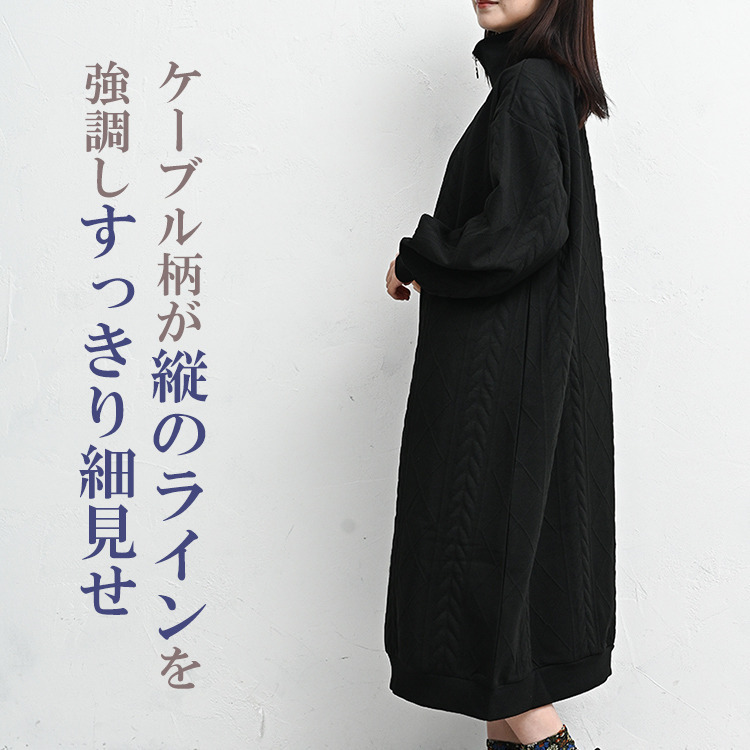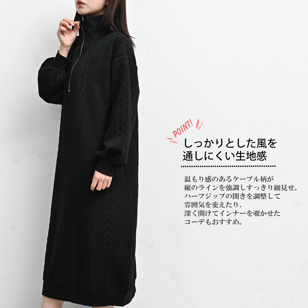 ぬくもりのあるケーブル柄ハーフジップワンピース