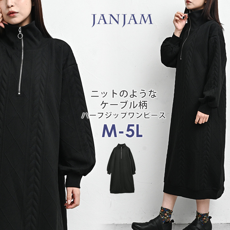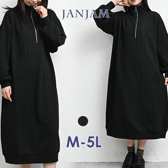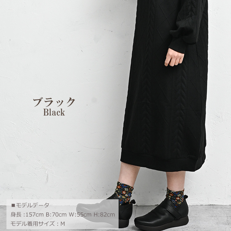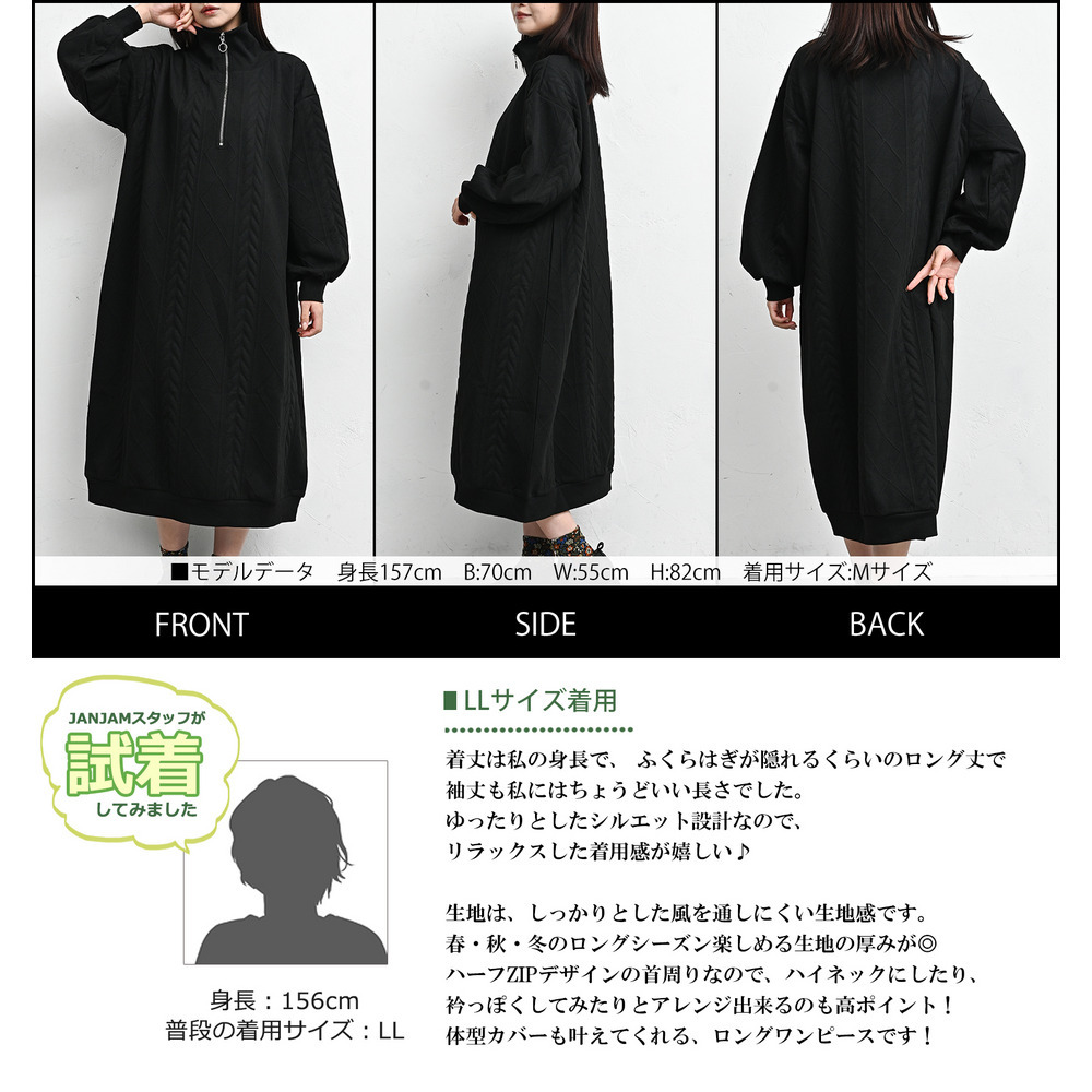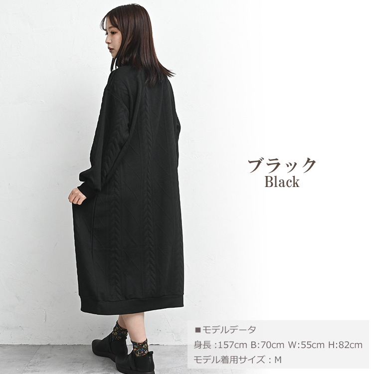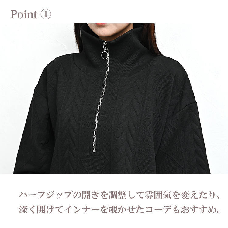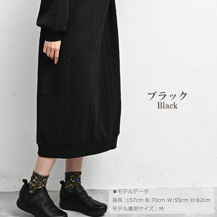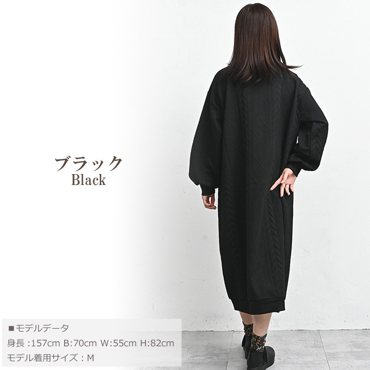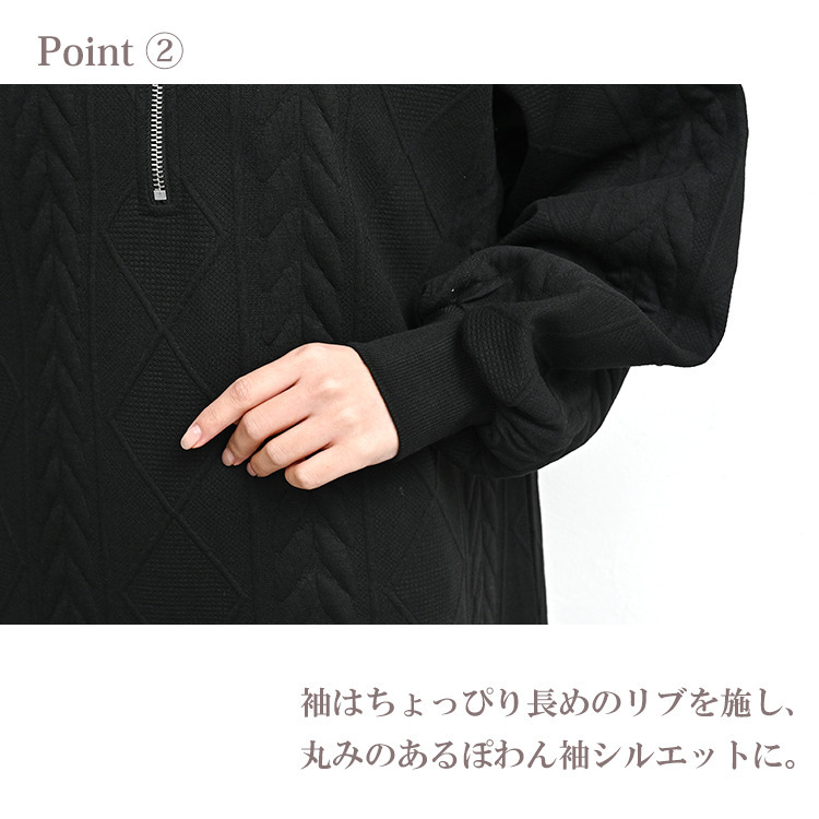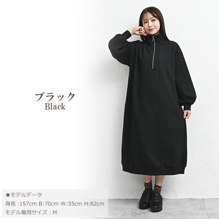 ぬくもりのあるケーブル柄ハーフジップワンピース