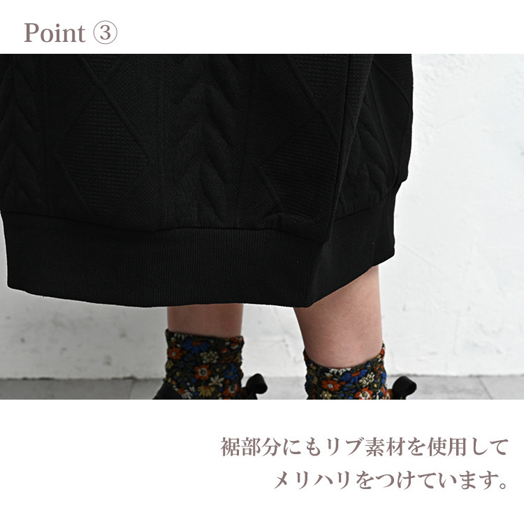 ケーブル柄が縦のラインを強調し