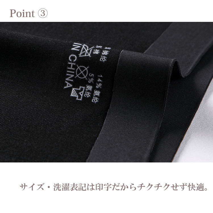 | 素材 | ナイロン86%、ポリウレタン14% クロッチ部分:綿95%、ポリウレタン5% |
