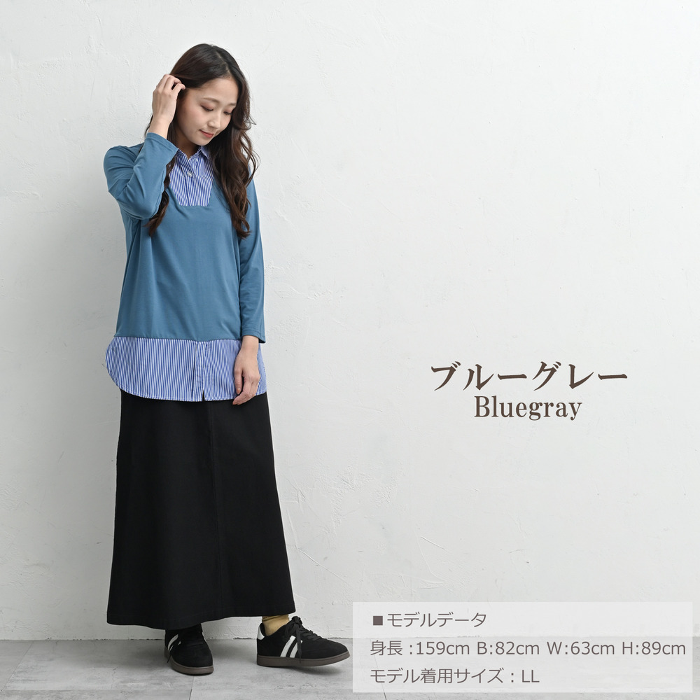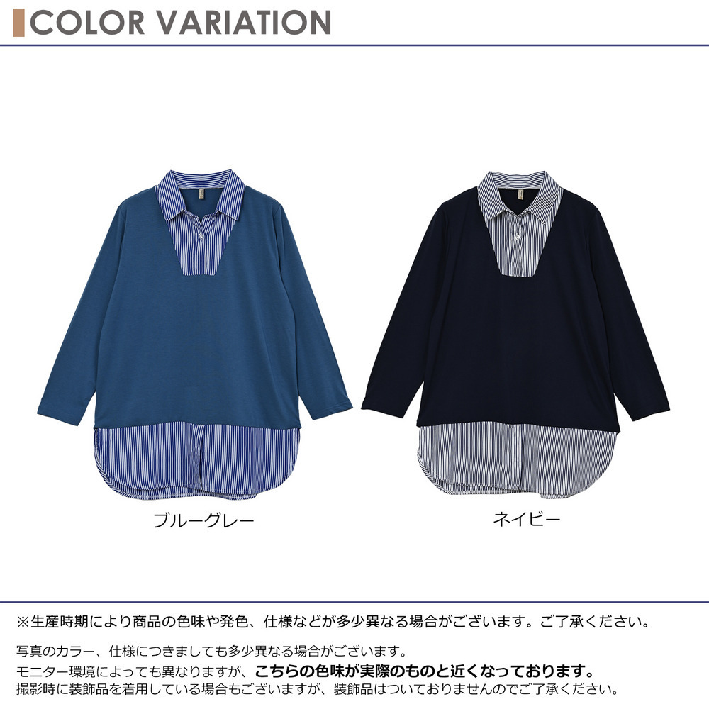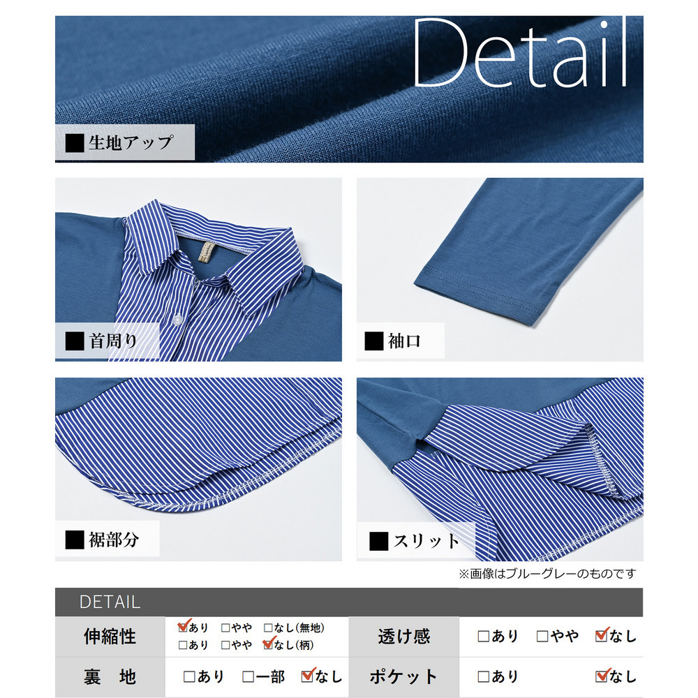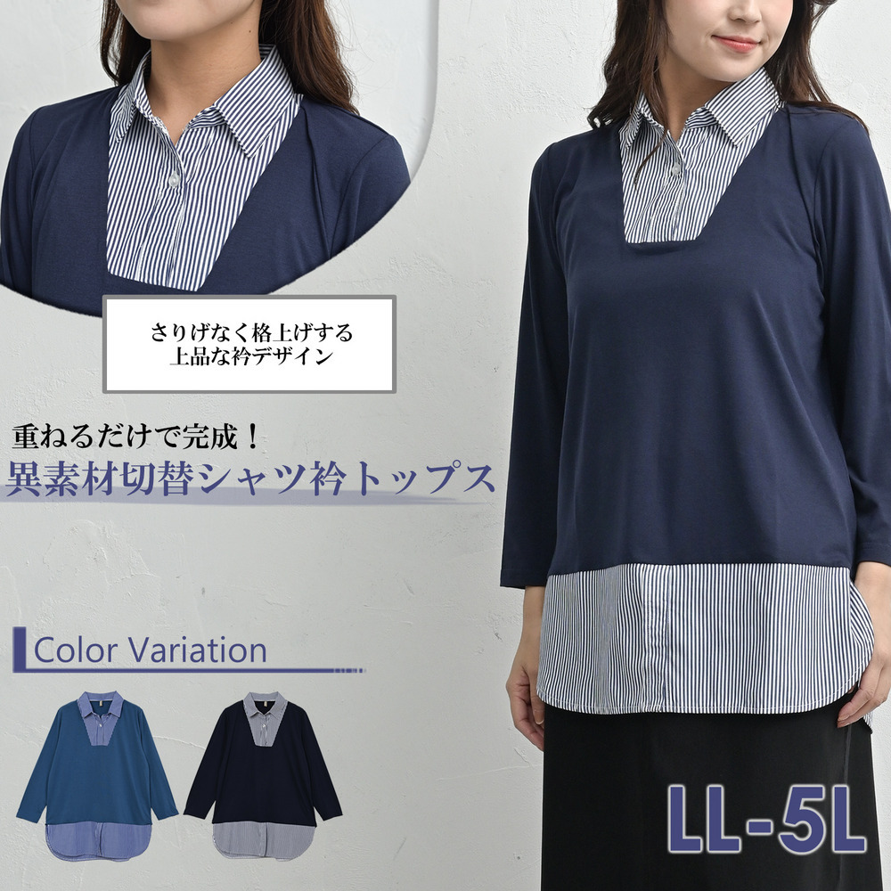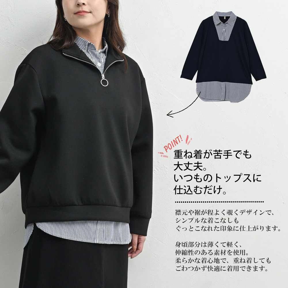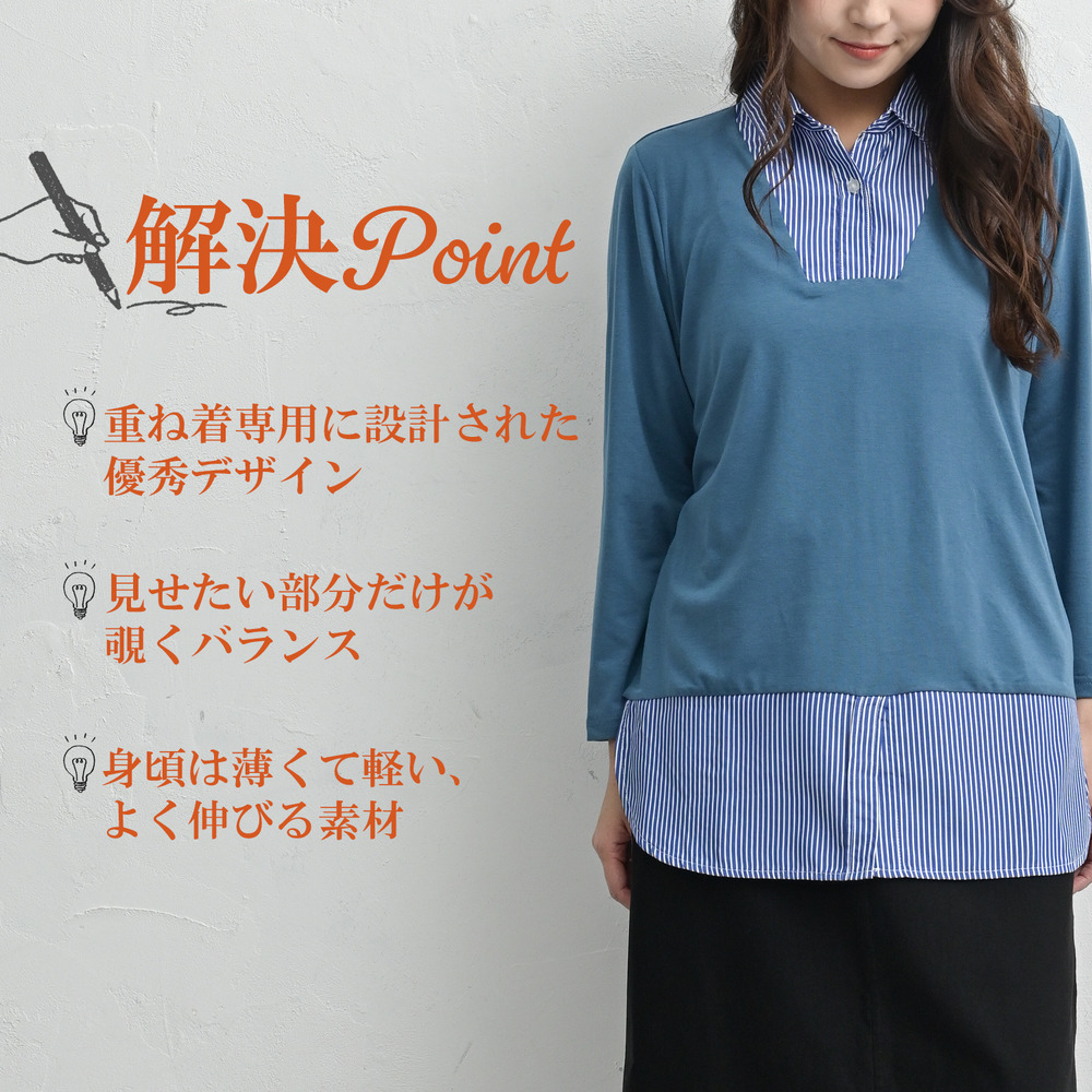 重ねるだけで完成!異素材切替シャツ衿トップス