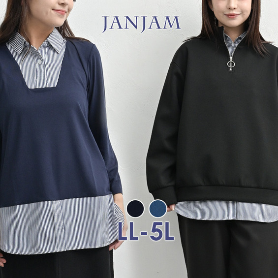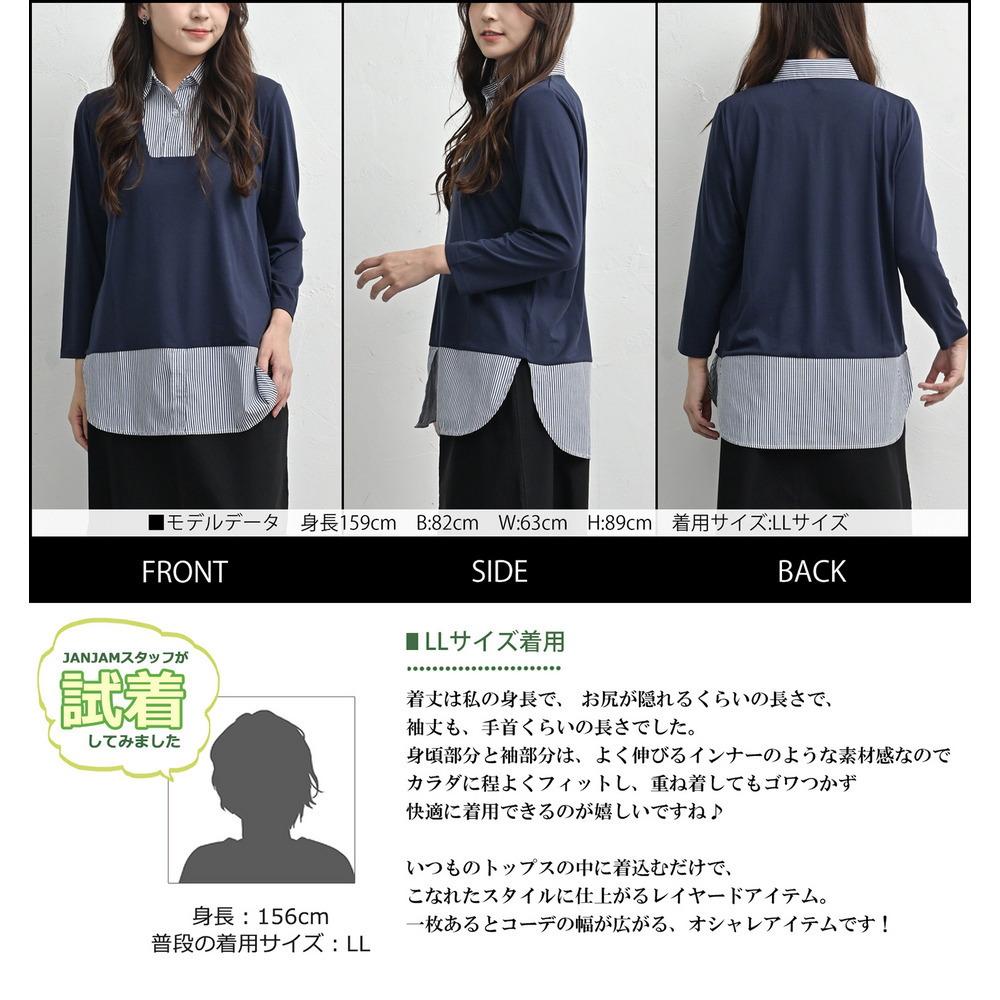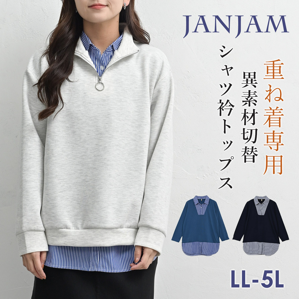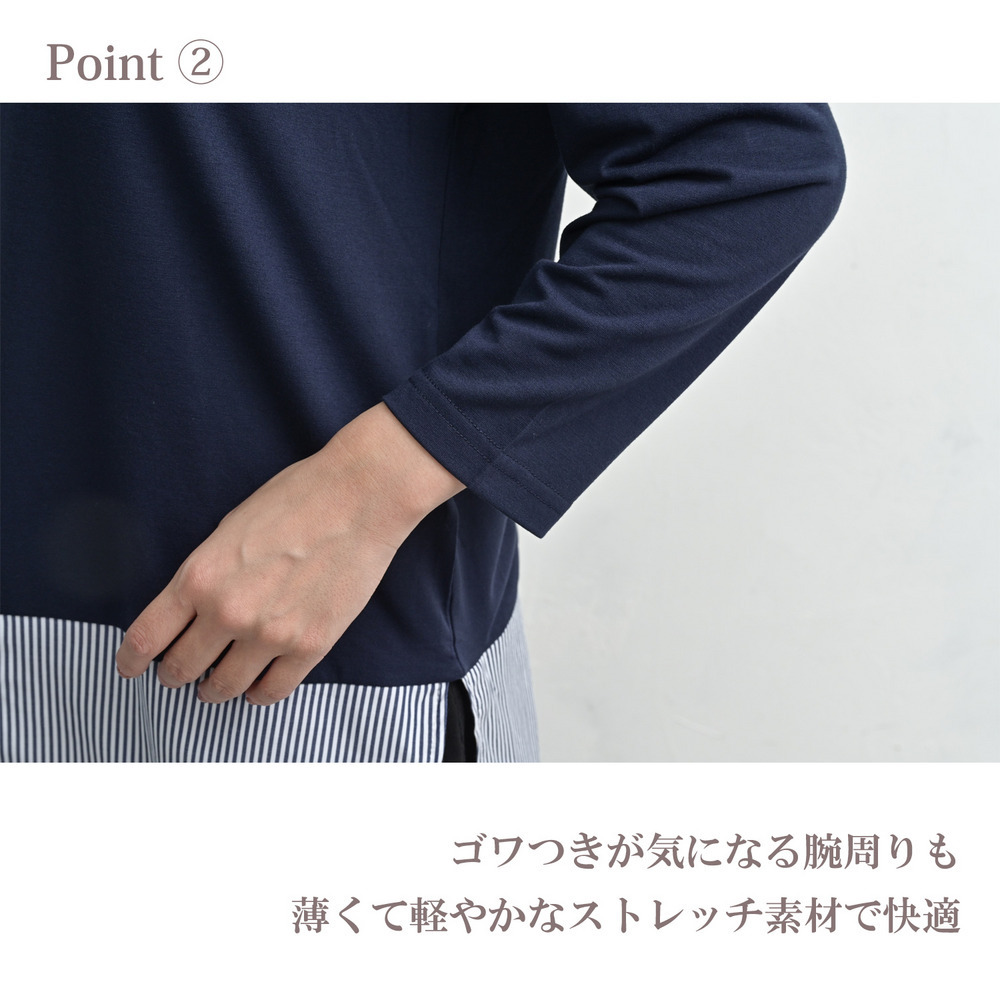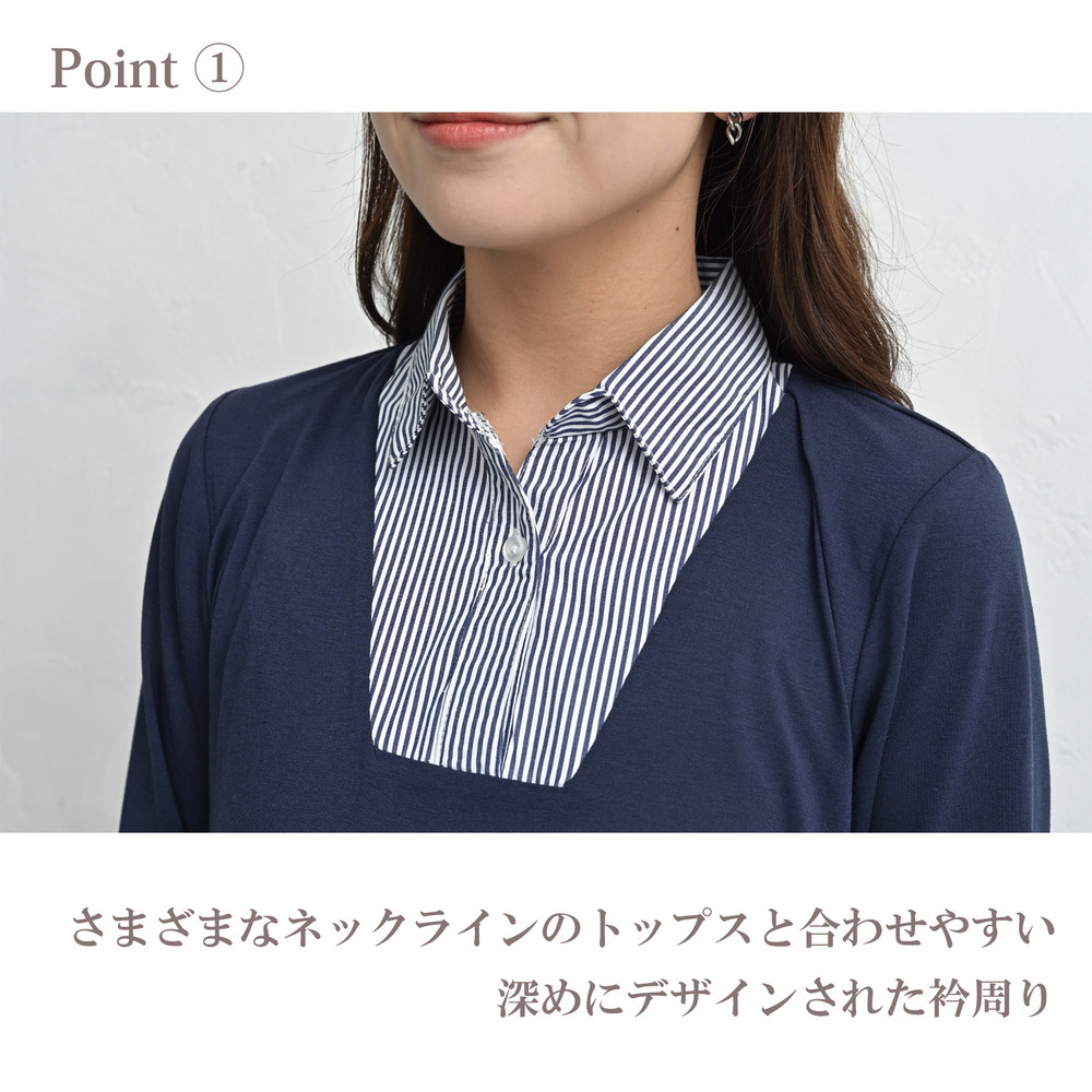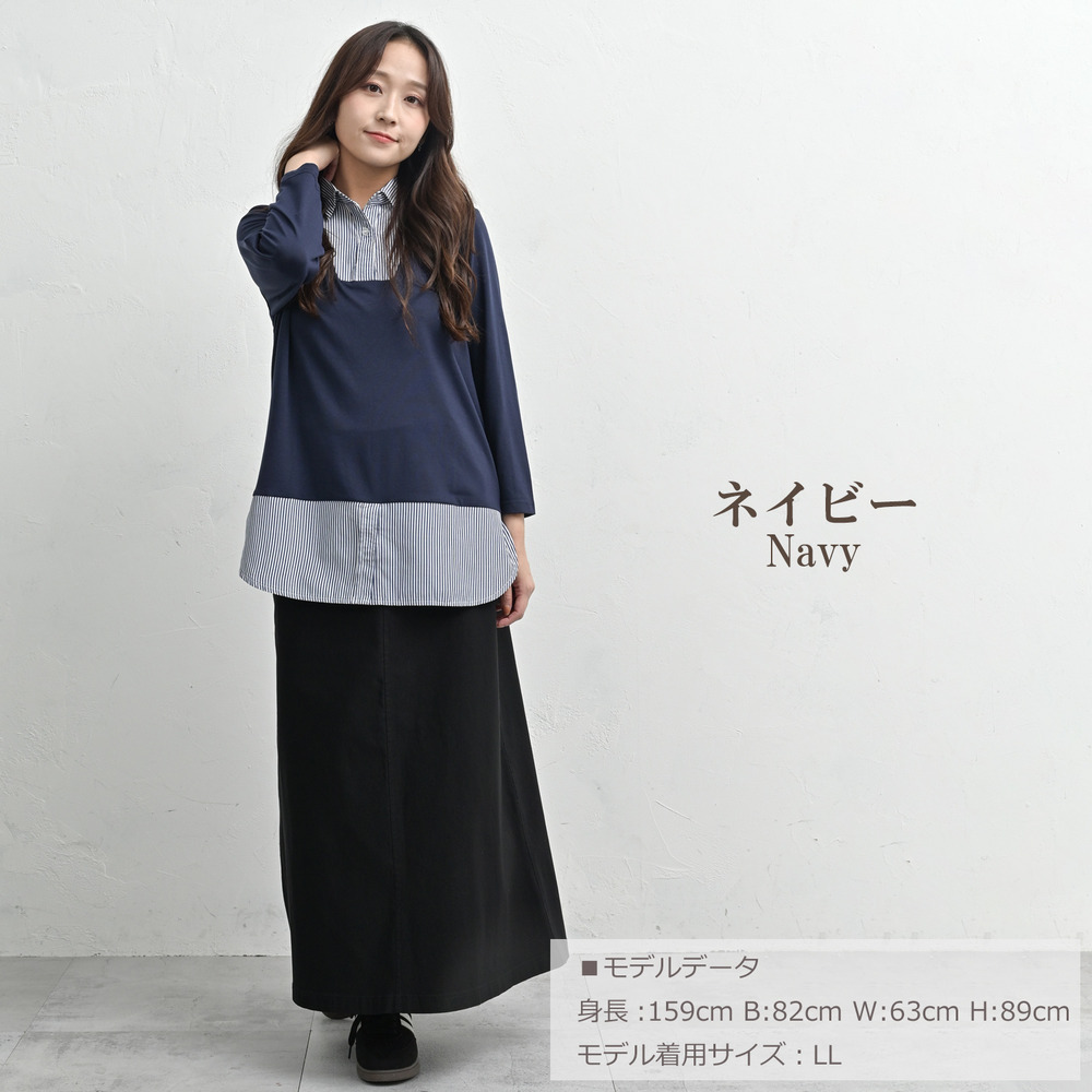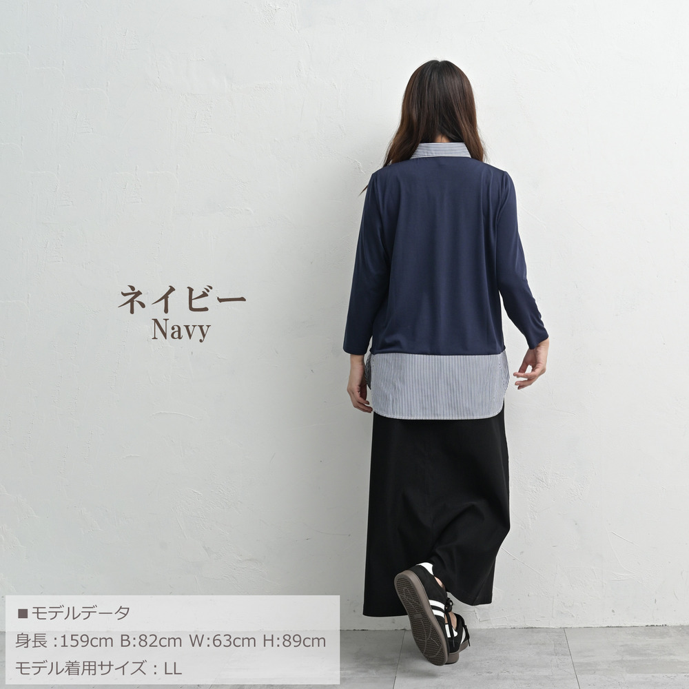 重ねるだけで完成!異素材切替シャツ衿トップス