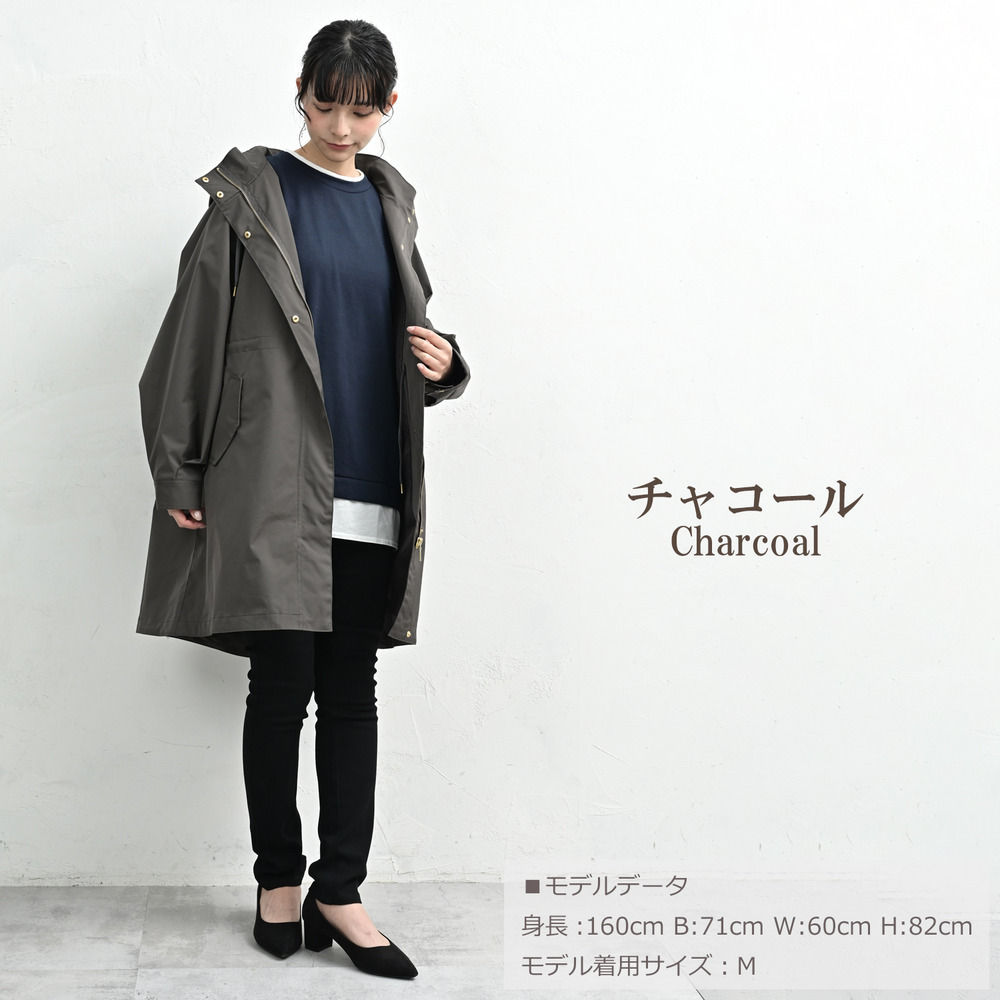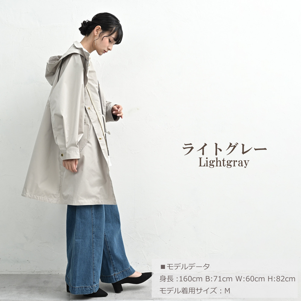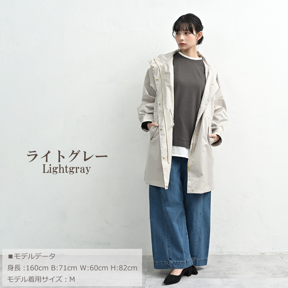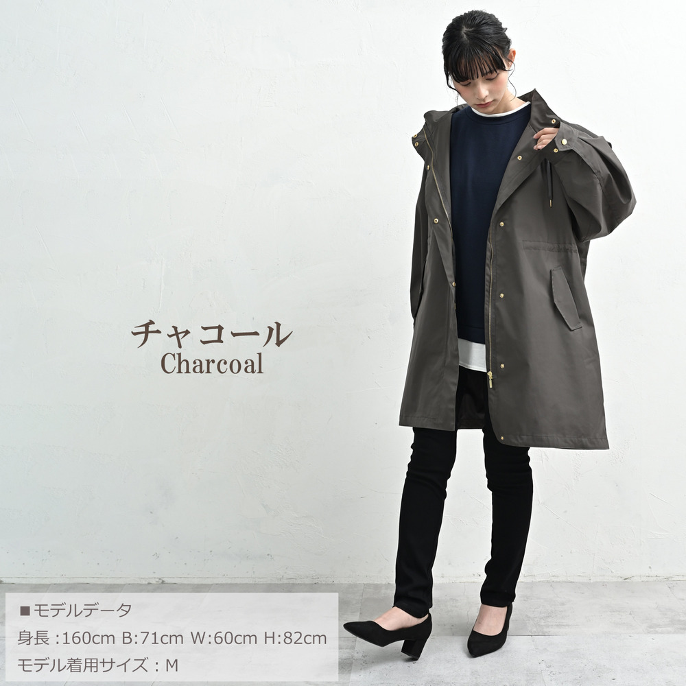 カジュアルになりがちなモッズコートを、上品な無地素材とゴールドパーツで洗練された一着に。