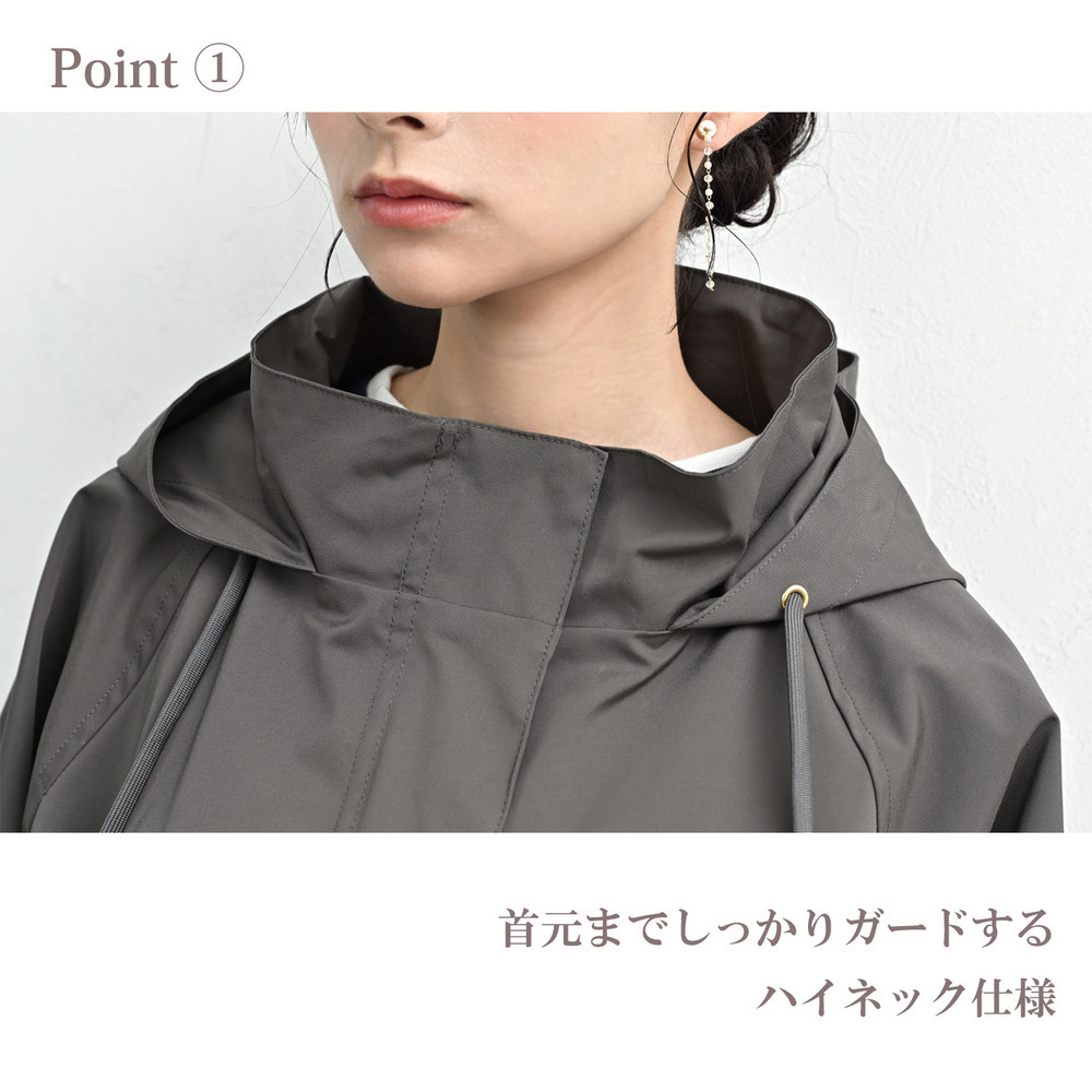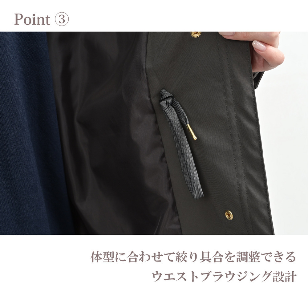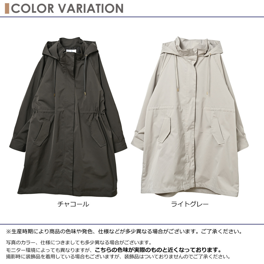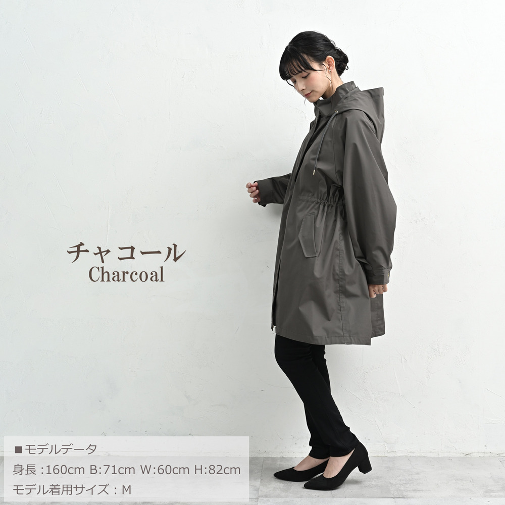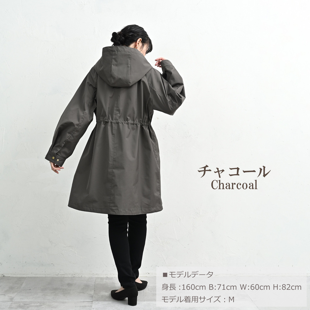 カジュアルになりがちなモッズコートを、上品な無地素材とゴールドパーツで洗練された一着に。