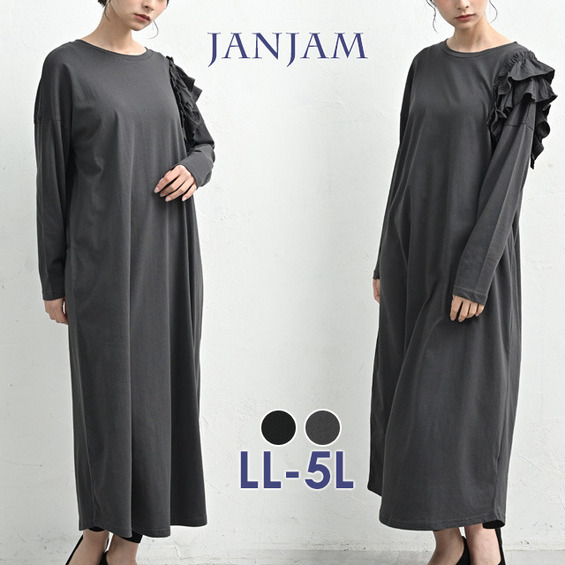 アシンメトリーな片袖フリルが視線を誘うロングワンピース