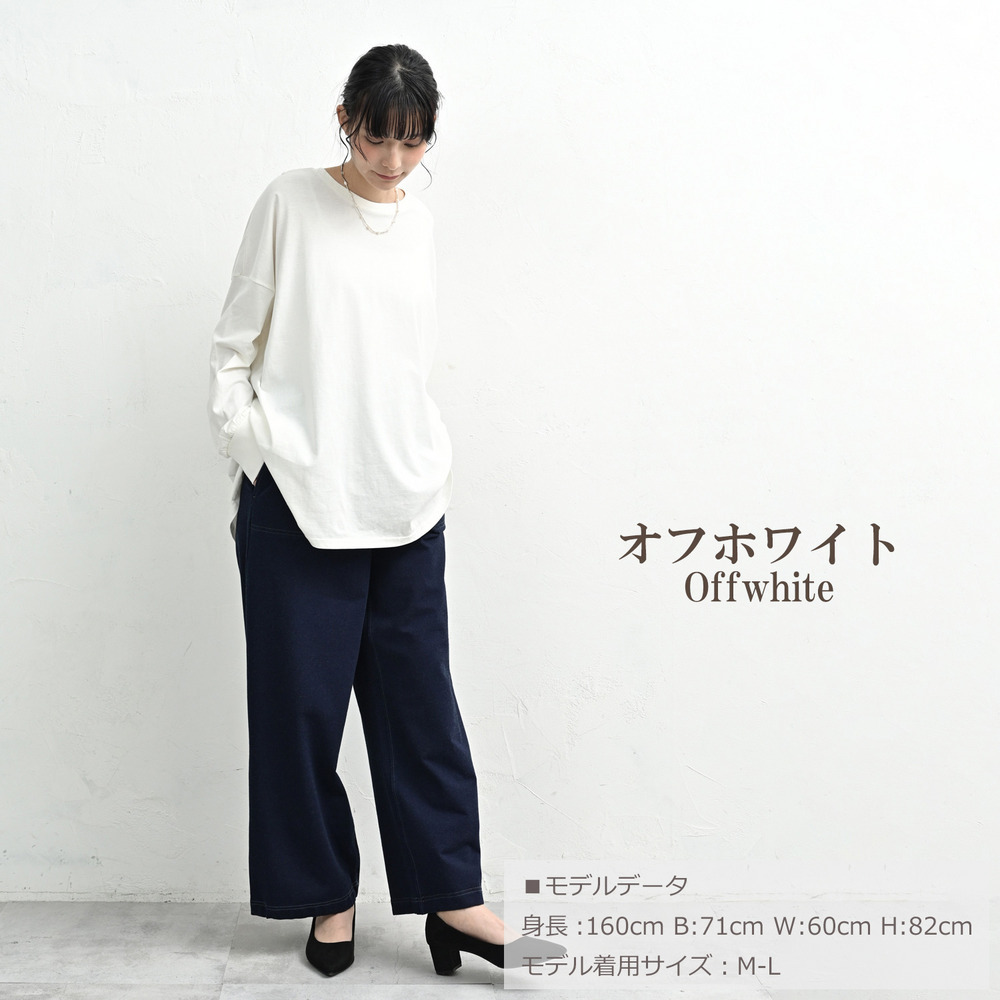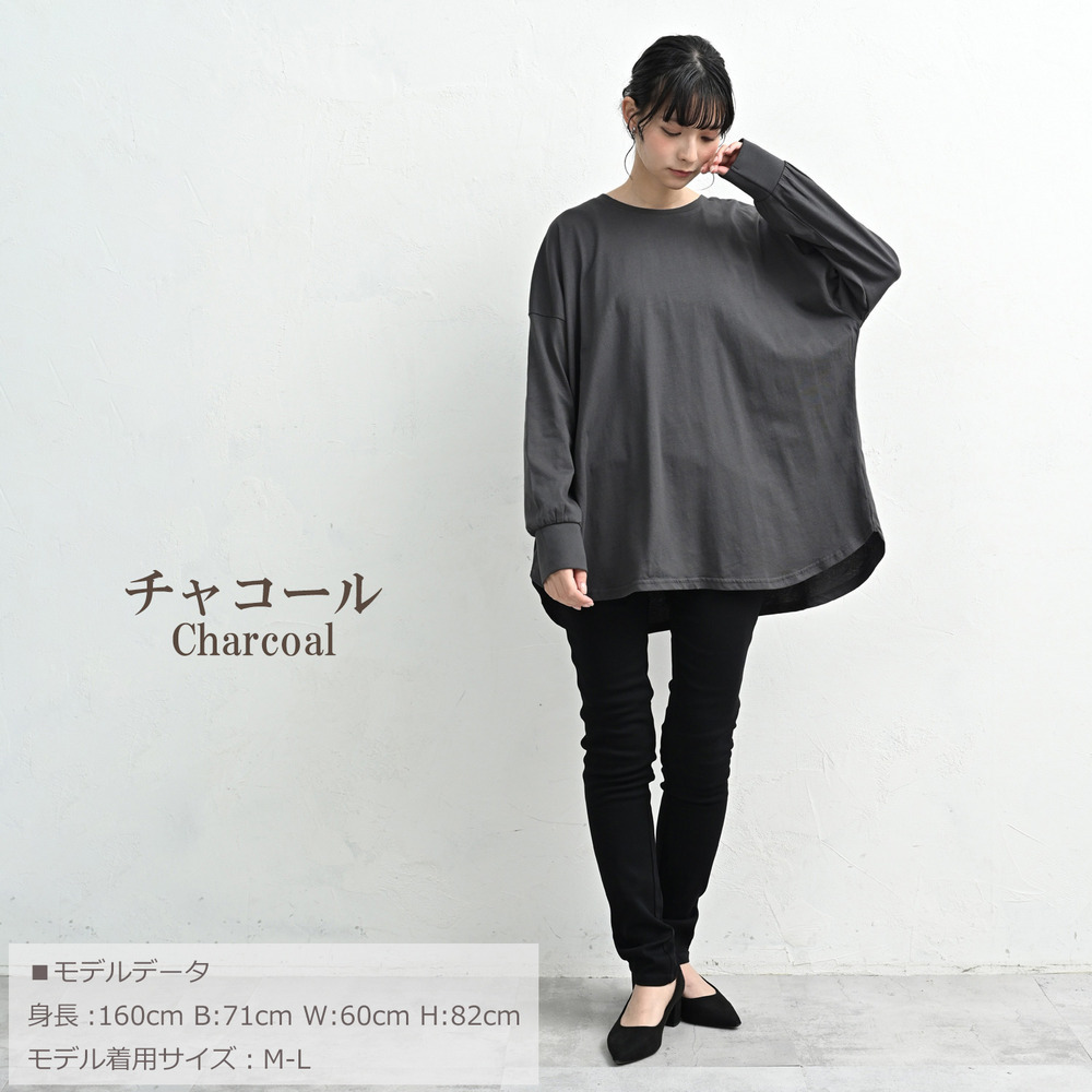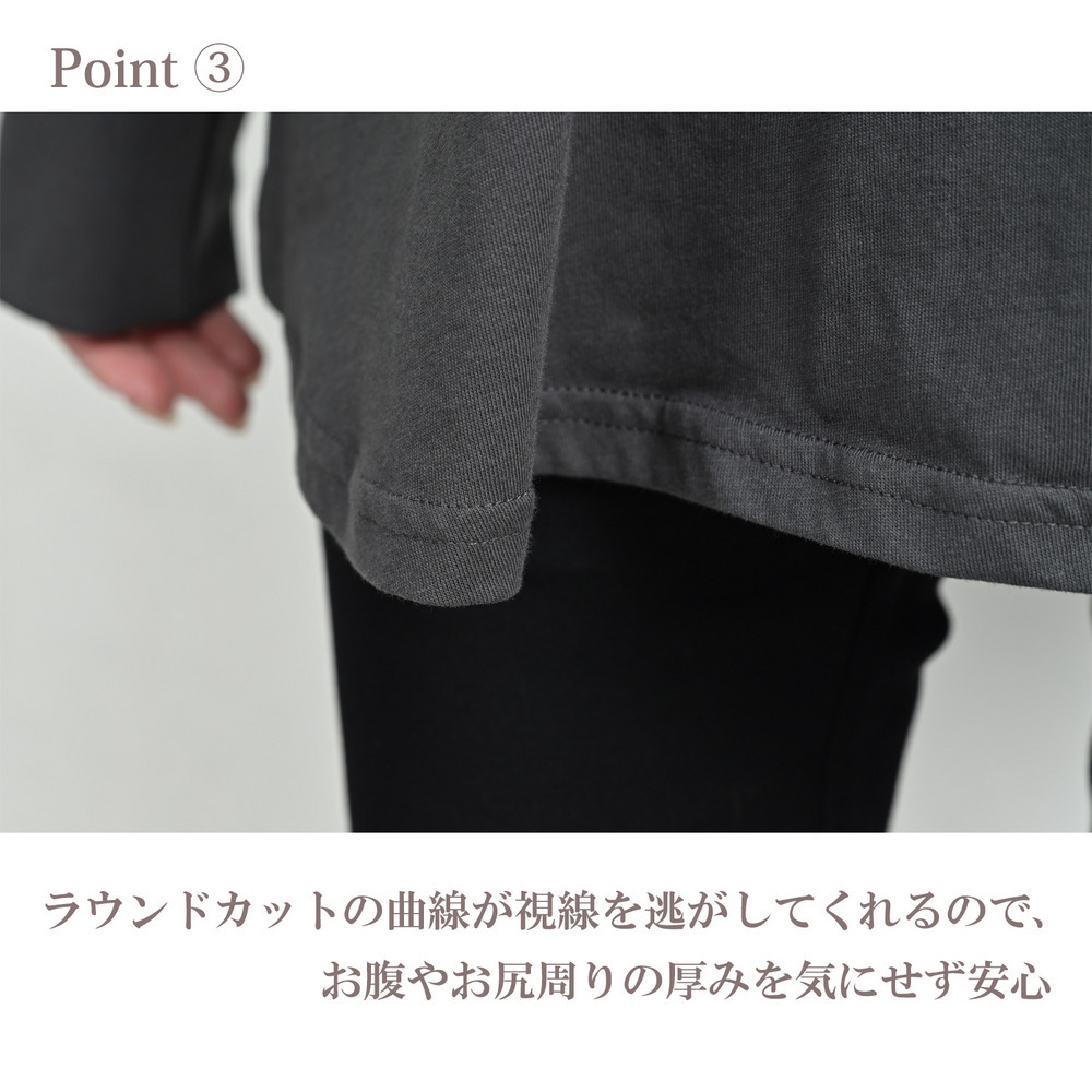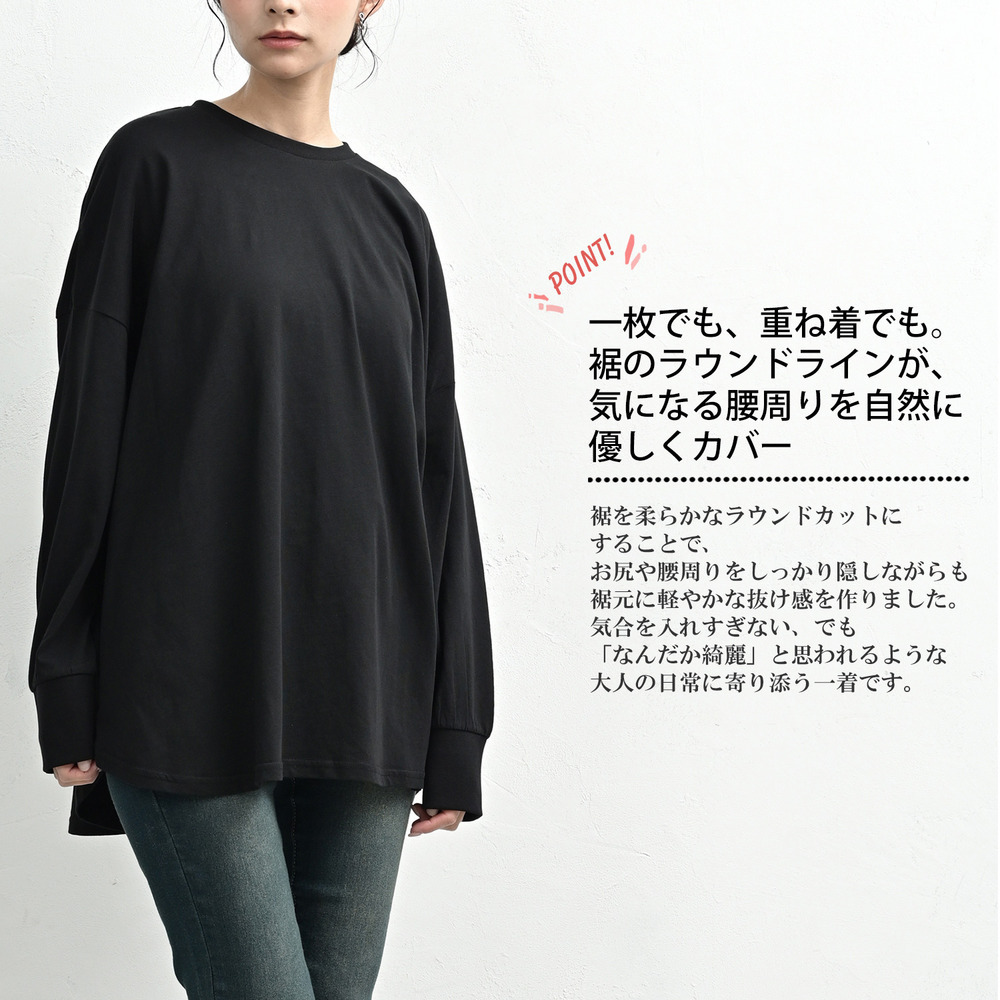「一枚でも、重ね着でも。裾のラウンドラインが気になる腰周りを自然に優しくカバーしてくれます」