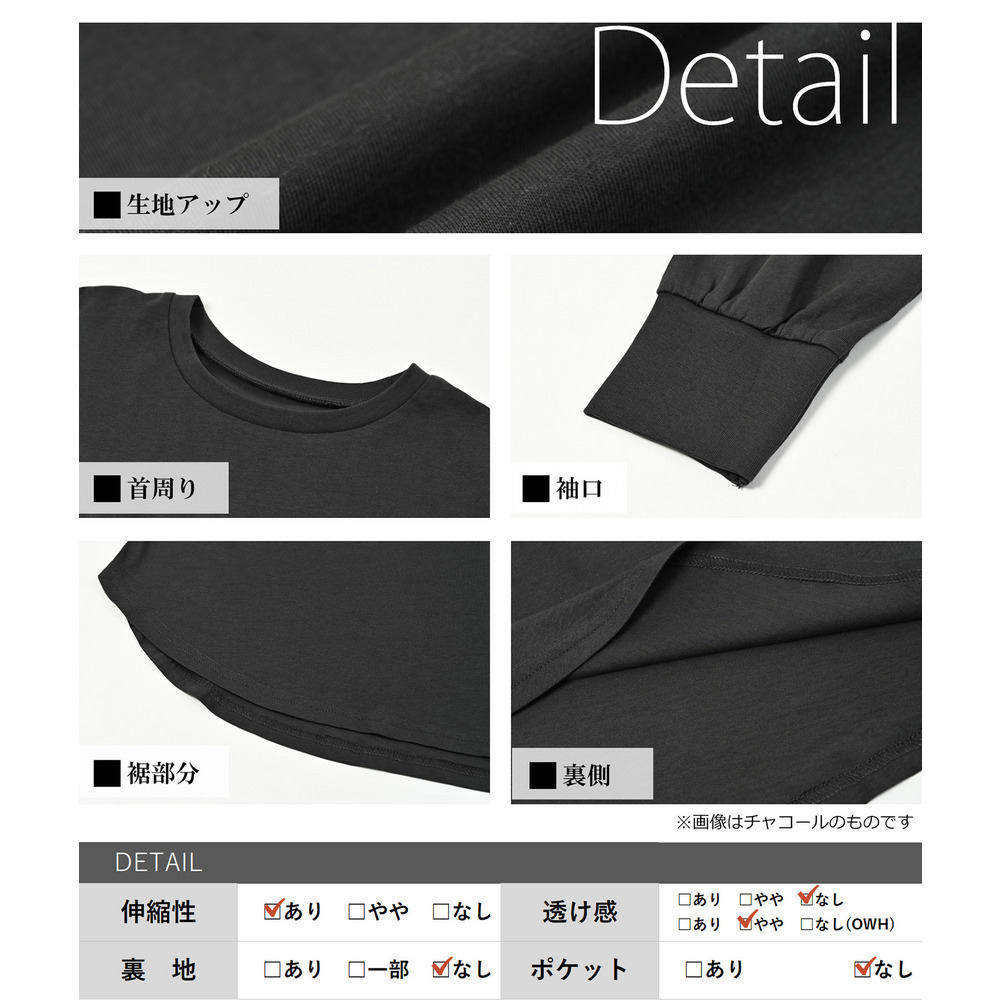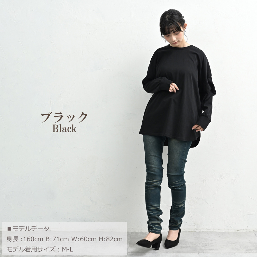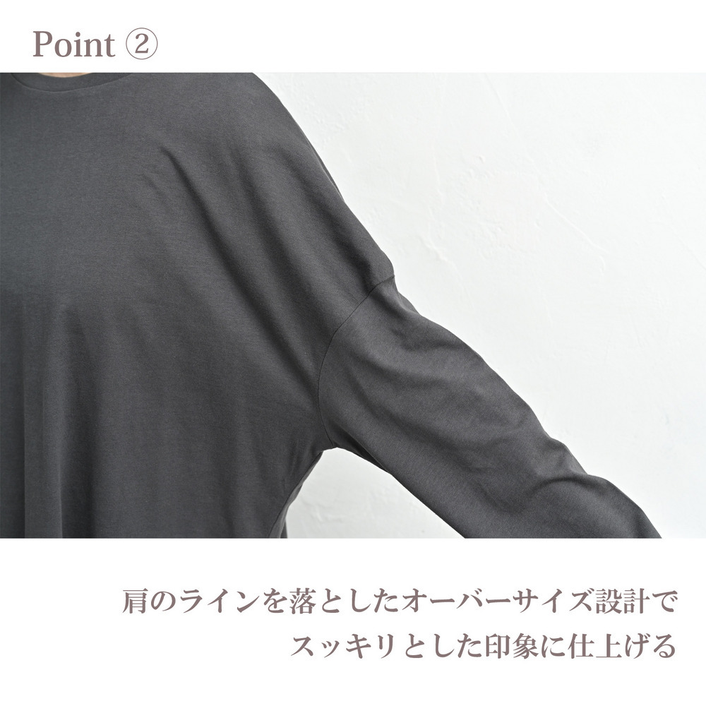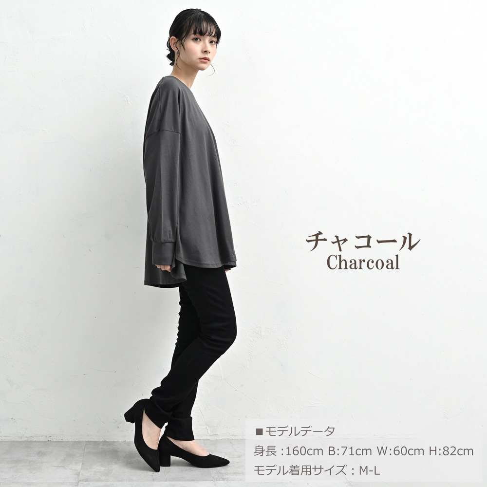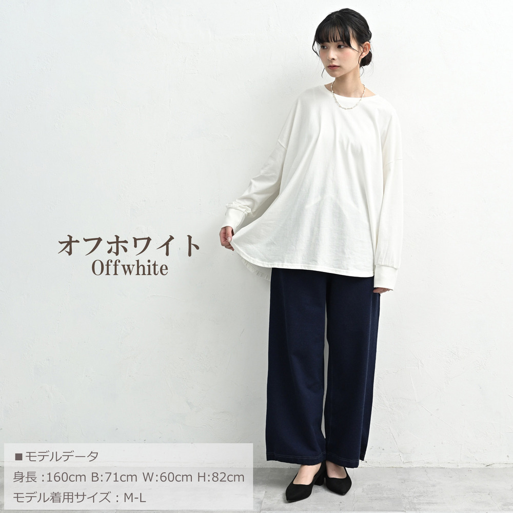 「一枚でも、重ね着でも。裾のラウンドラインが気になる腰周りを自然に優しくカバーしてくれます」