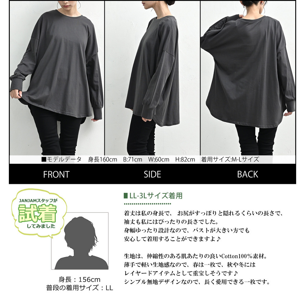 サイズ表記 LL-3L 4L-5L 着丈 72-75 74-77 肩幅 71 74 バスト 148 160 袖丈 44.5 44.5 袖口周 19 21 裾周 152 164