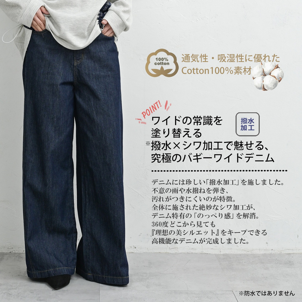 撥水×シワ加工で魅せる究極のバギーワイドデニムパンツ