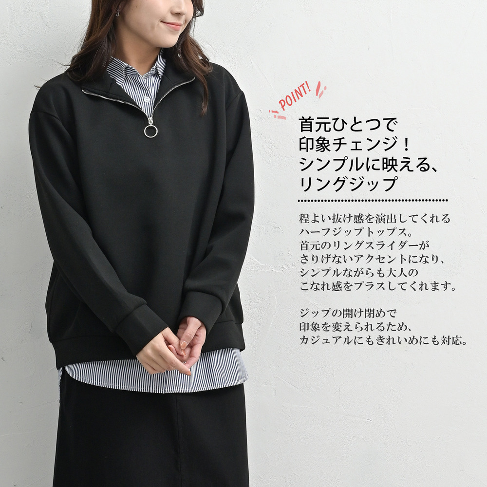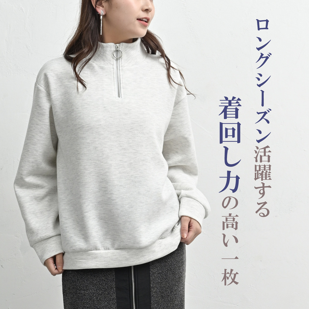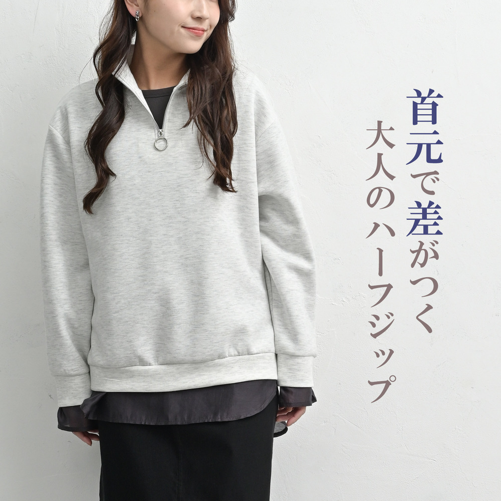 首元ひとつで印象チェンジ!ハーフジッププルオーバー