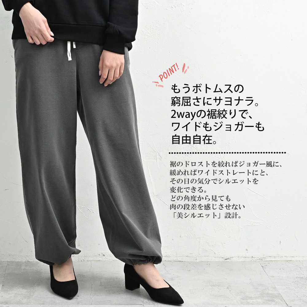 ワイドもジョガーも自由自在な2way仕様イージーパンツ