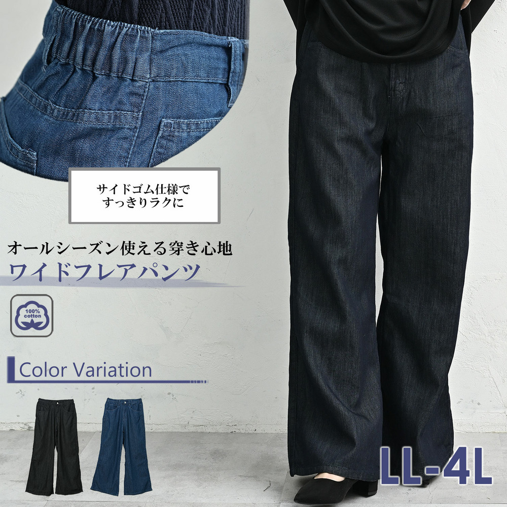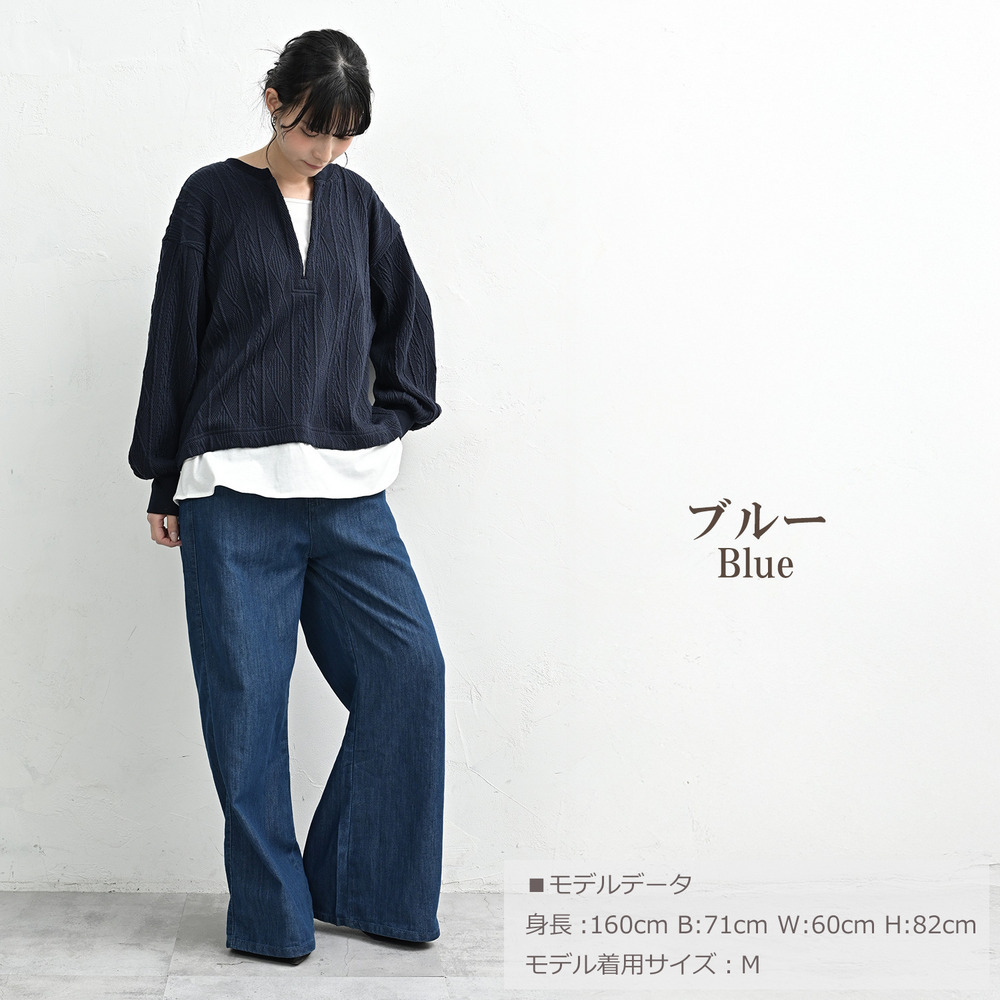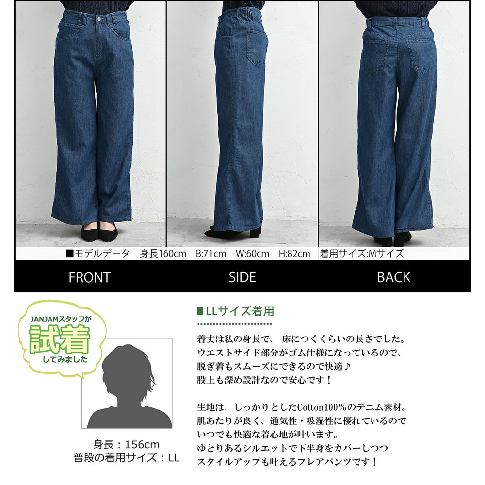 脚長に見せるフレアの魔法、デニムワイドパンツ