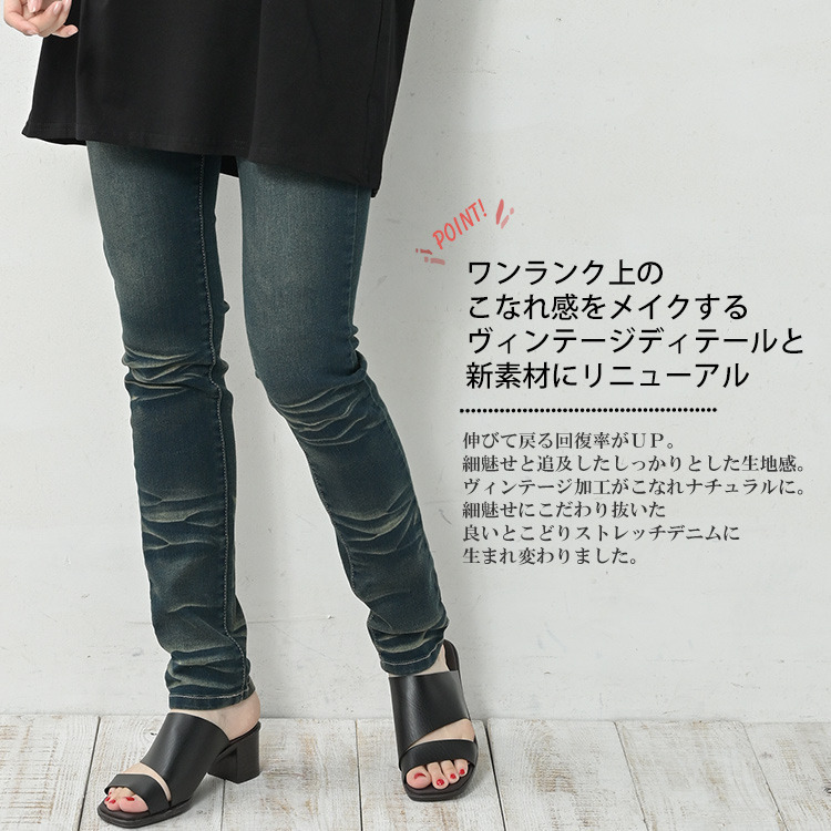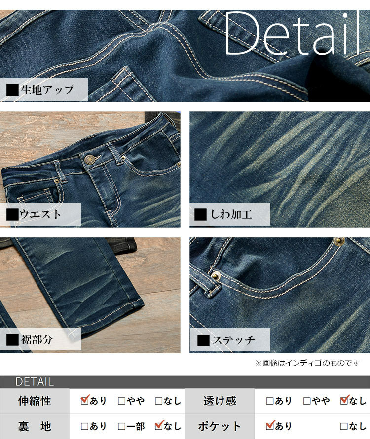 5色 スキニー ジーンズ しわ加工 伸縮デニム レディース ジーパン ジーンズ 大きいサイズ レディース