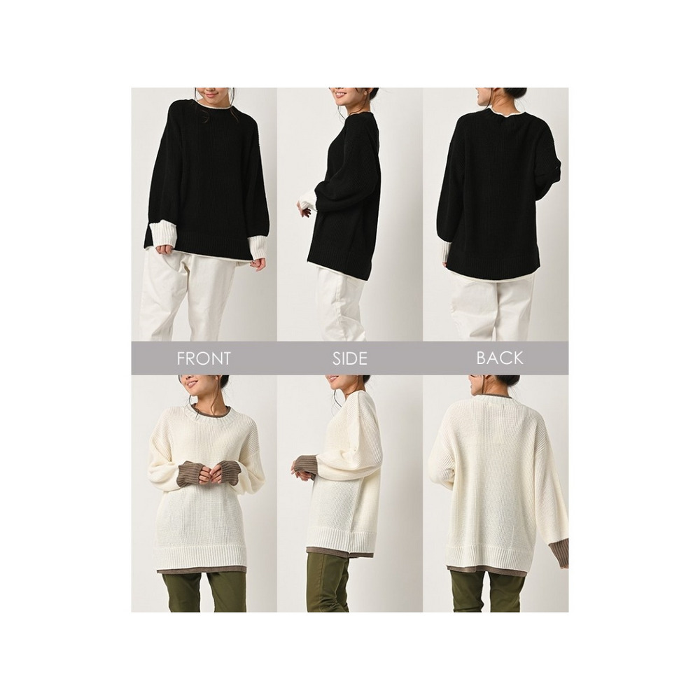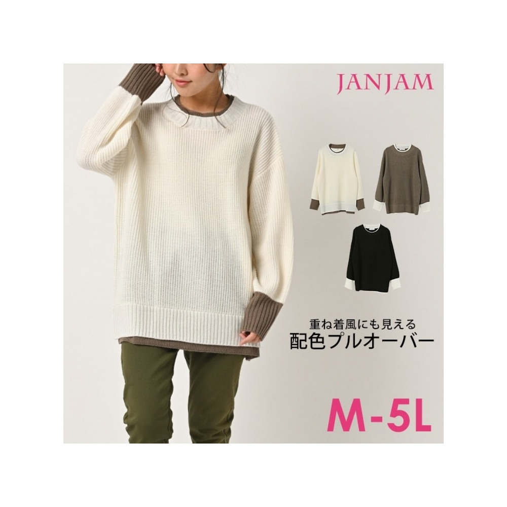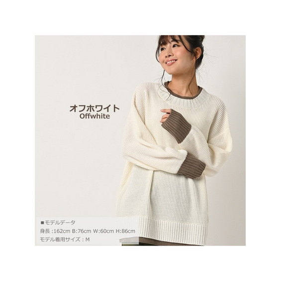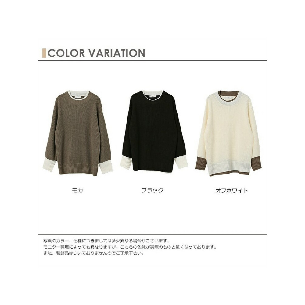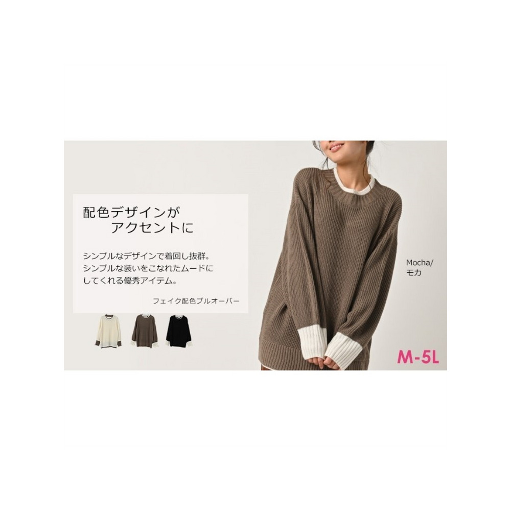 大きいサイズ レディース フェイク配色ニット 長袖 重ね着風 バイカラー ぽわん袖 セータートップス 大きいサイズ レディース