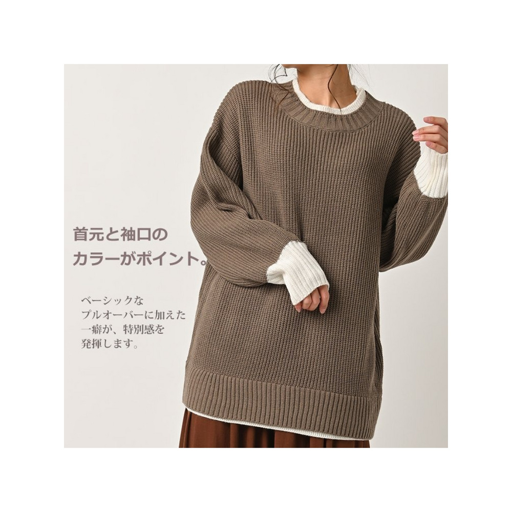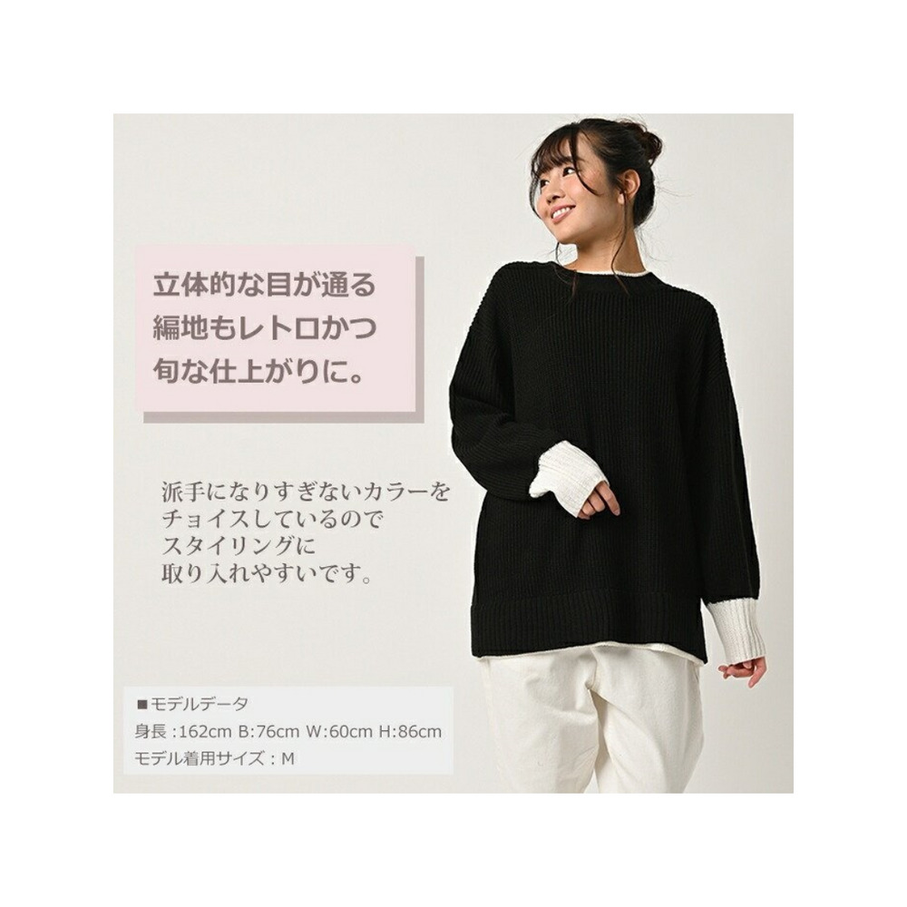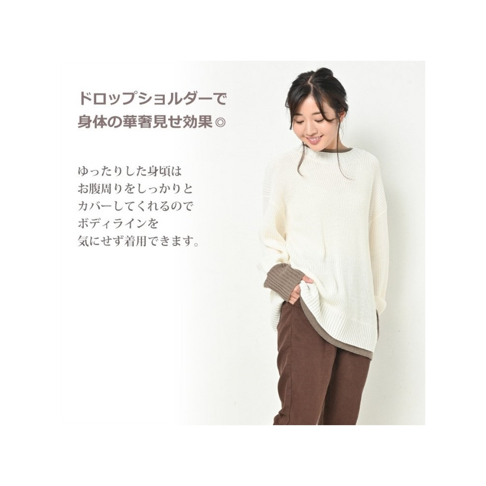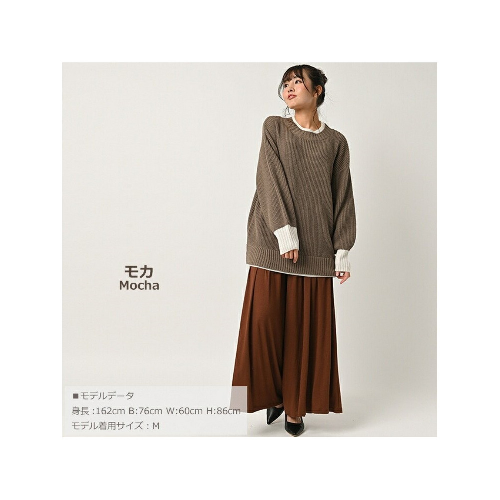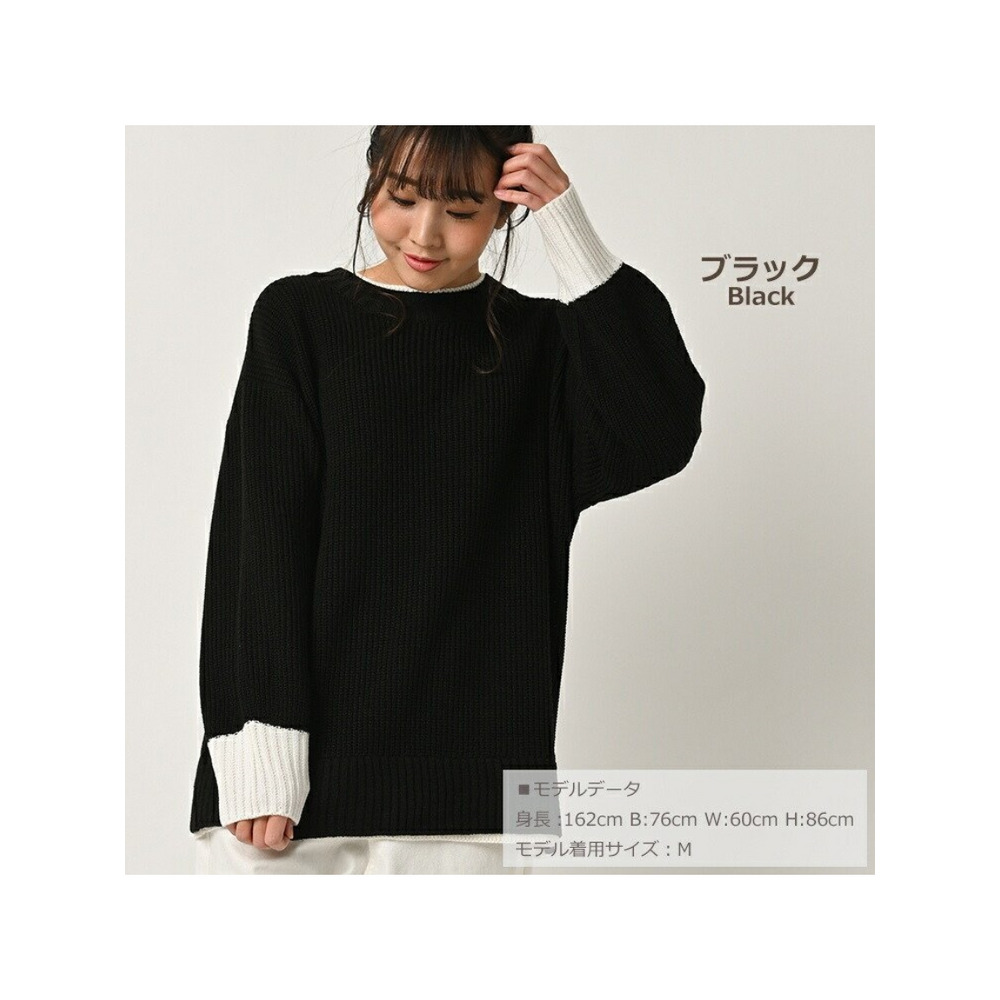 大きいサイズ レディース フェイク配色ニット 長袖 重ね着風 バイカラー ぽわん袖 セータートップス 大きいサイズ レディース