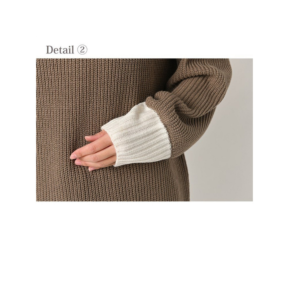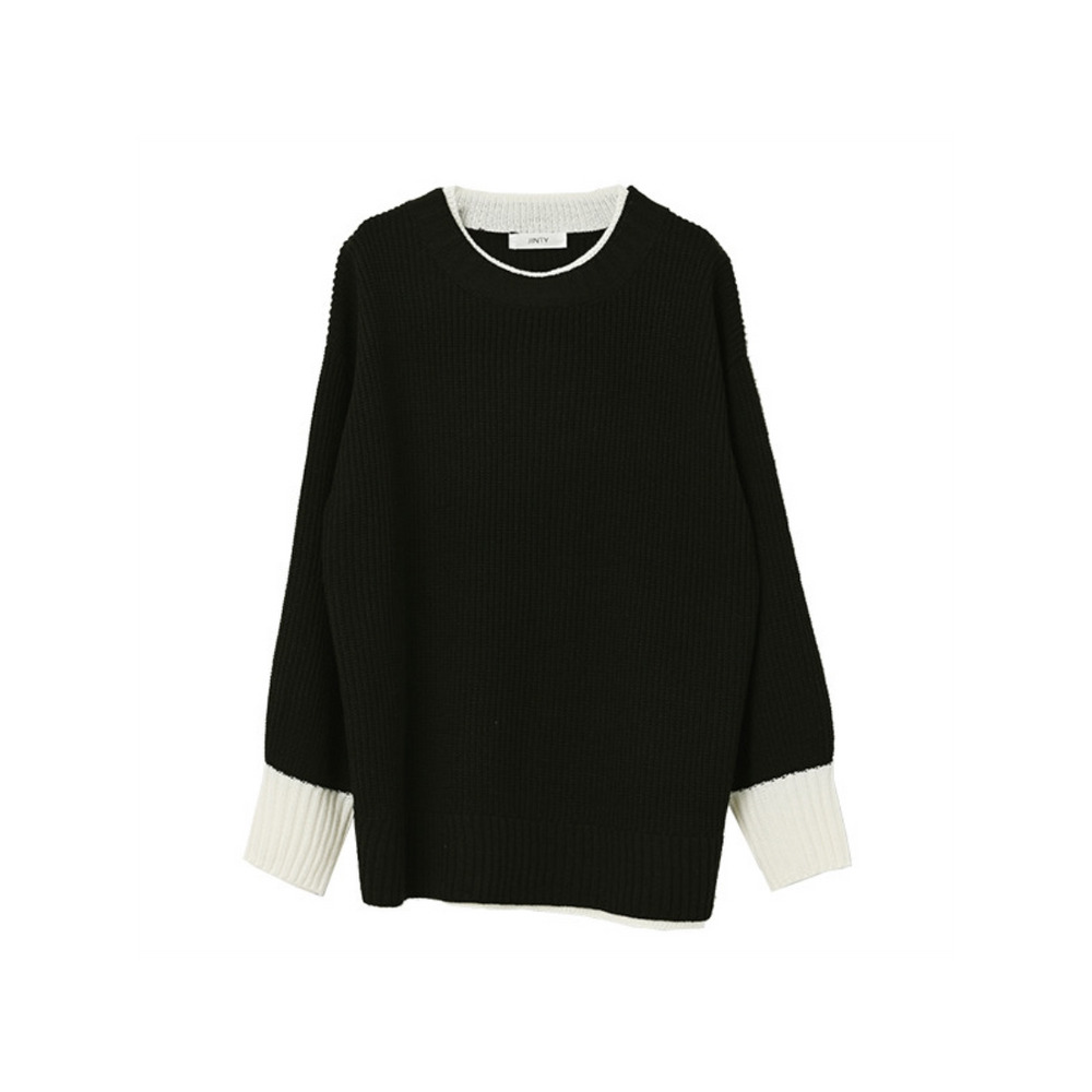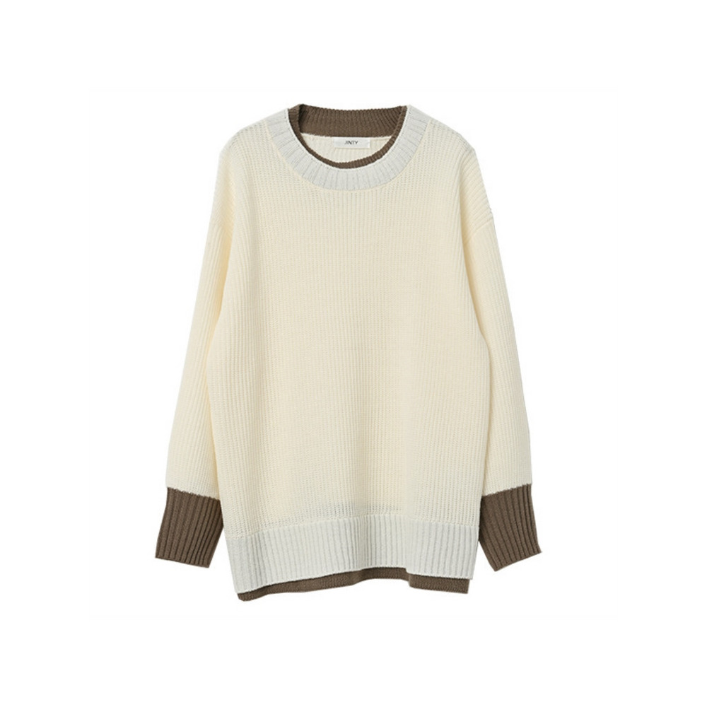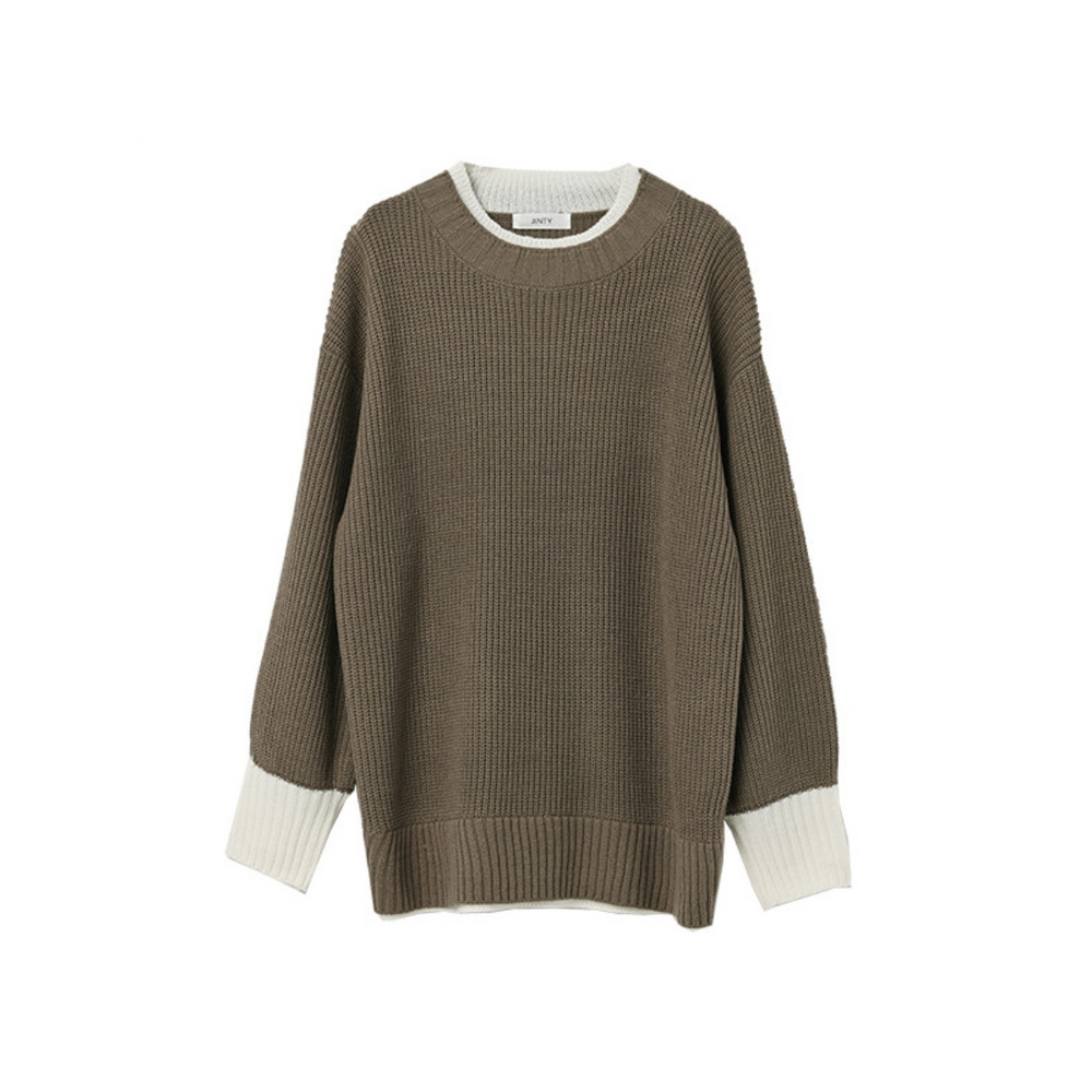 大きいサイズ レディース フェイク配色ニット 長袖 重ね着風 バイカラー ぽわん袖 セータートップス 大きいサイズ レディース
