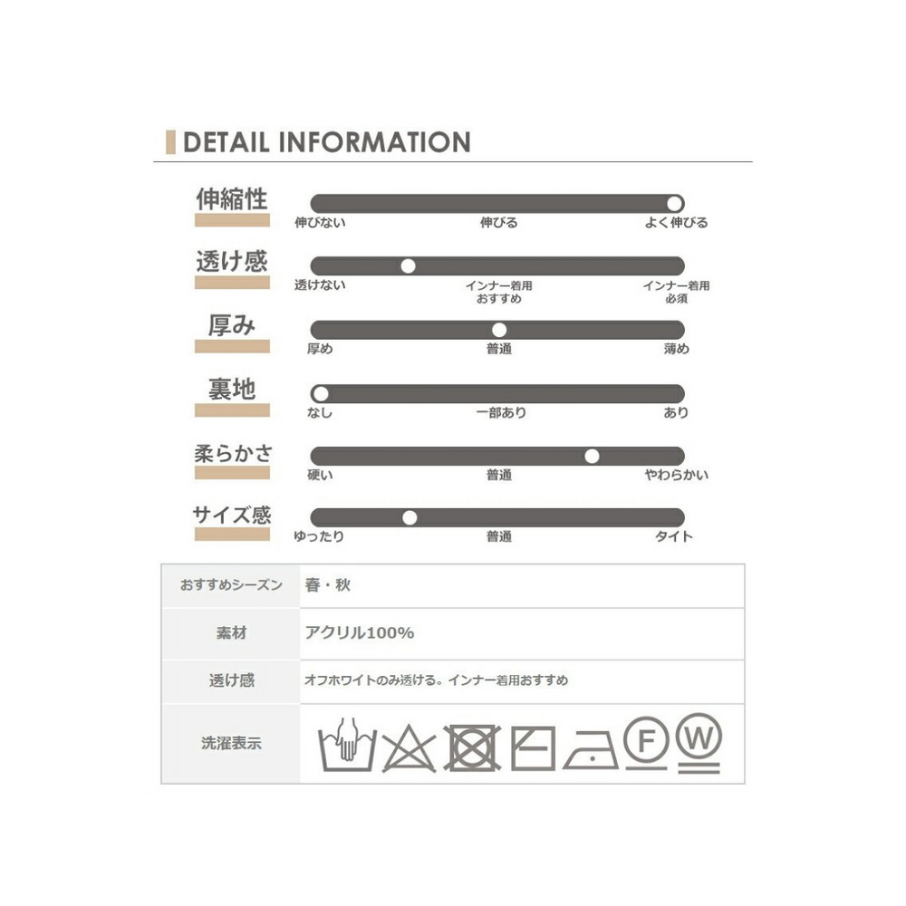 透け感/透けない(オフホワイトのみ透ける。インナー着用おすすめ)