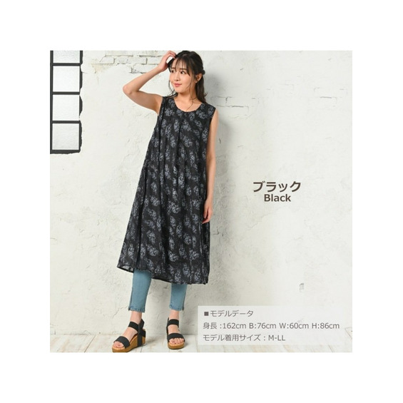 • 大きいサイズ レディース Aラインワンピース ペイズリー柄 ノースリーブ ロング丈22