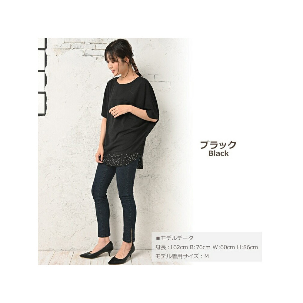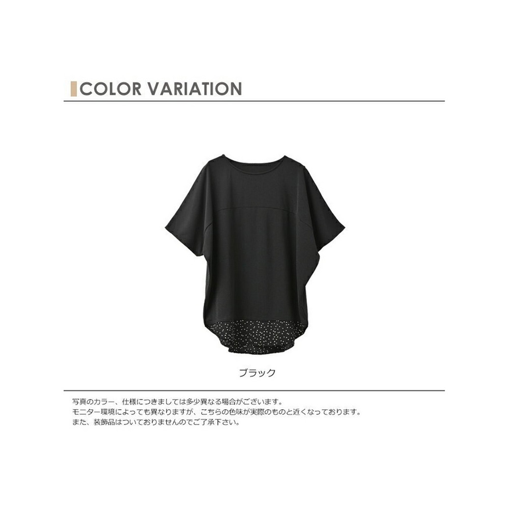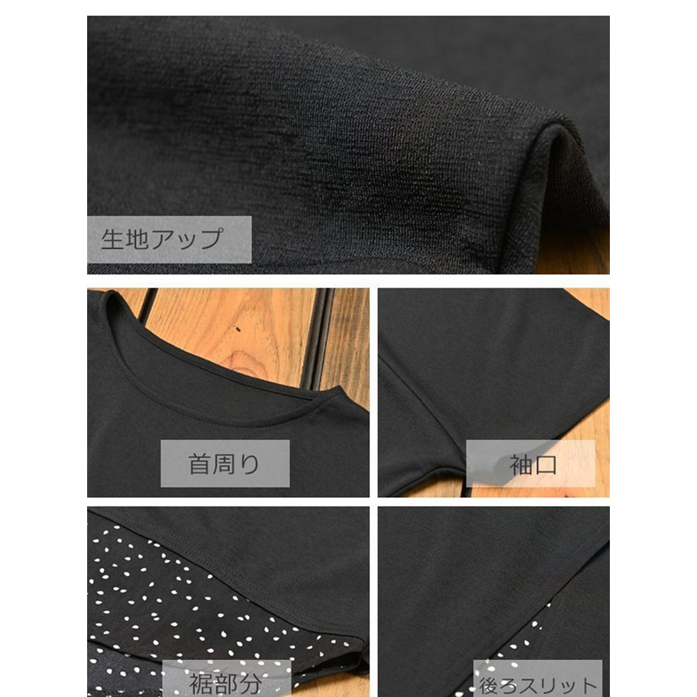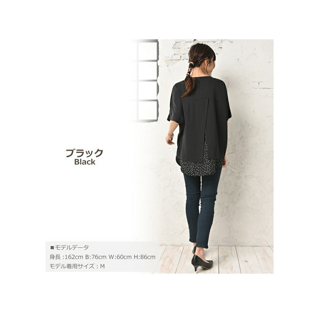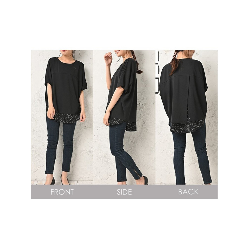 体型をカバーしつつお洒落も楽しむ。重ね着風幾何学ドット柄×無地プルオーバー 大きいサイズ レディース