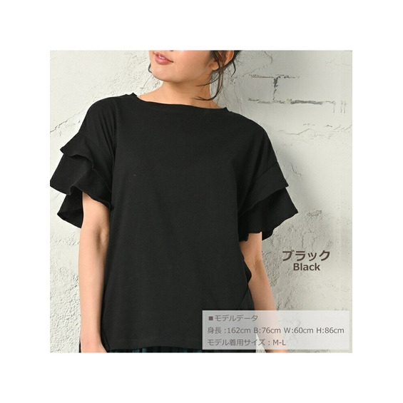 • ガーリーなフリルが綺麗に二の腕をカバーする半袖無地Tシャツ 大きいサイズ レディース24