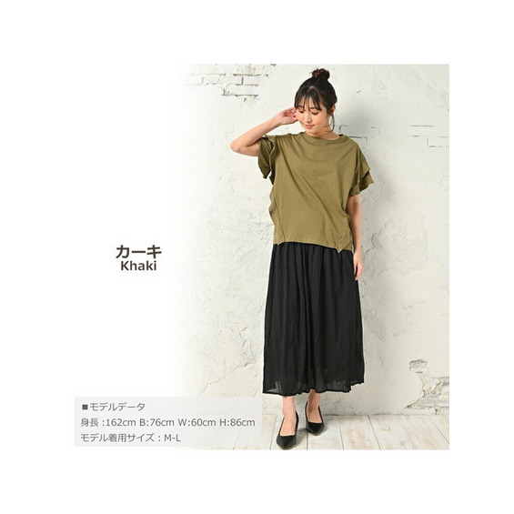 • ガーリーなフリルが綺麗に二の腕をカバーする半袖無地Tシャツ 大きいサイズ レディース17