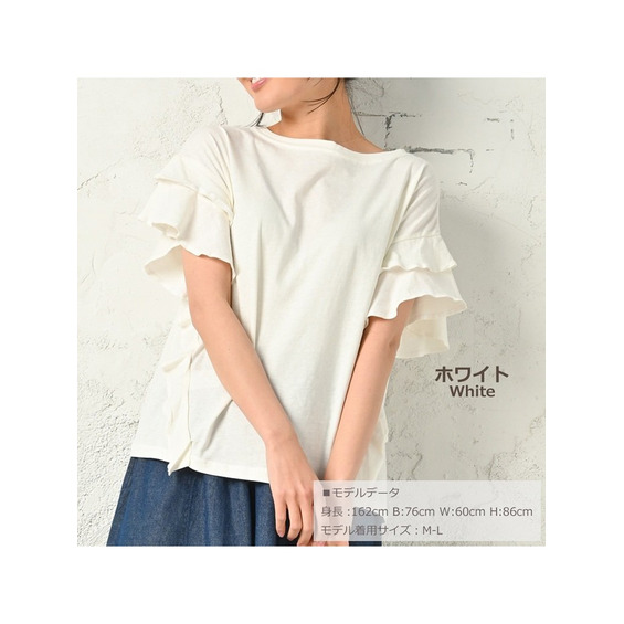 • ガーリーなフリルが綺麗に二の腕をカバーする半袖無地Tシャツ 大きいサイズ レディース6