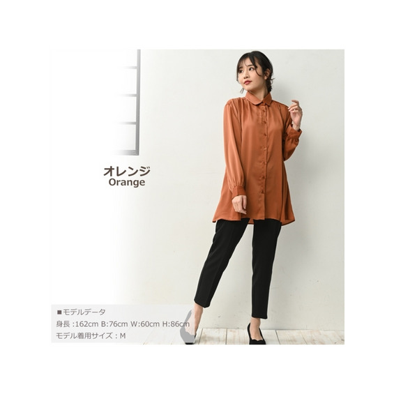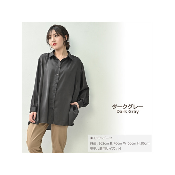 沢感のある生地が華やかさをプラス。たっぷりドレープフレアのシャツチュニック 大きいサイズ レディース