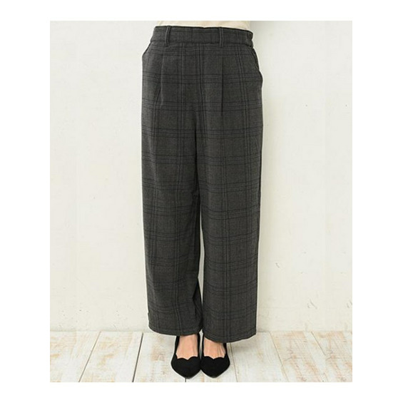 チェック柄ワイドパンツ。