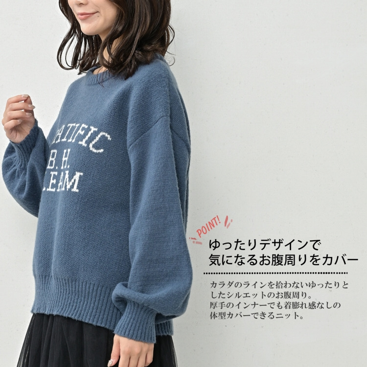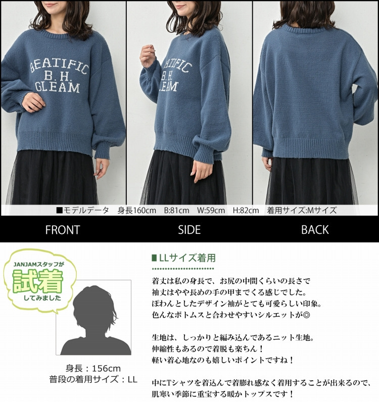 ぽわん袖が女性らしい暖かニットプルオーバー 大きいサイズ レディース