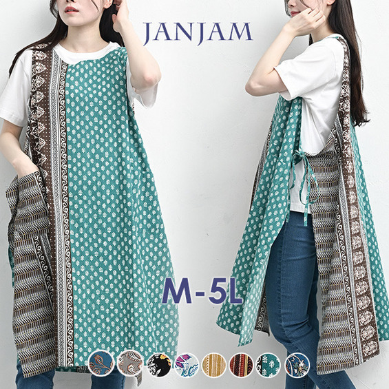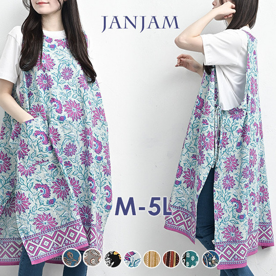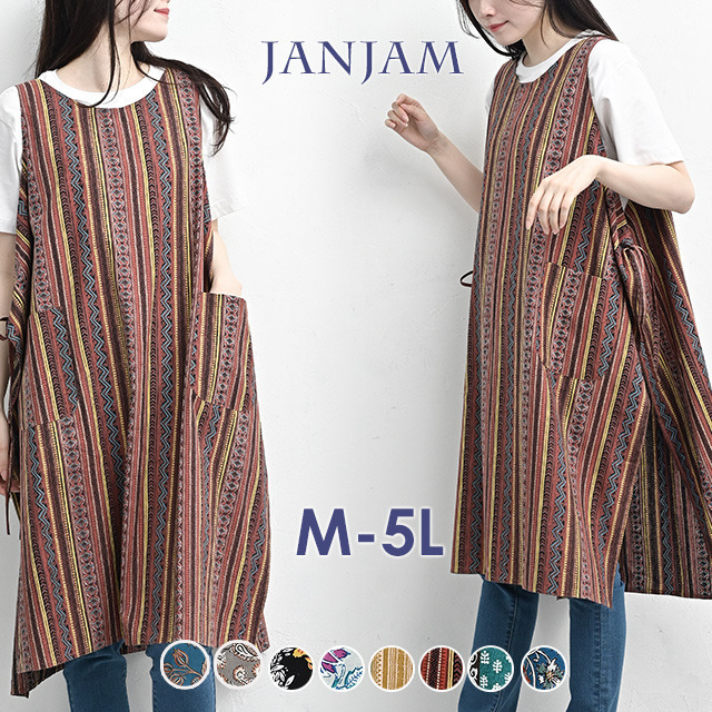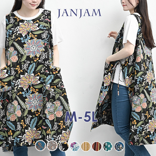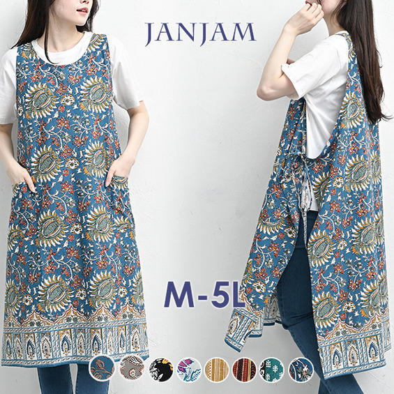 • カラフルなデザイン柄のエプロンワンピース 大きいサイズ レディース18