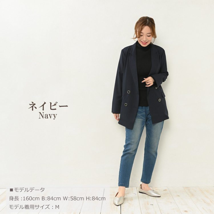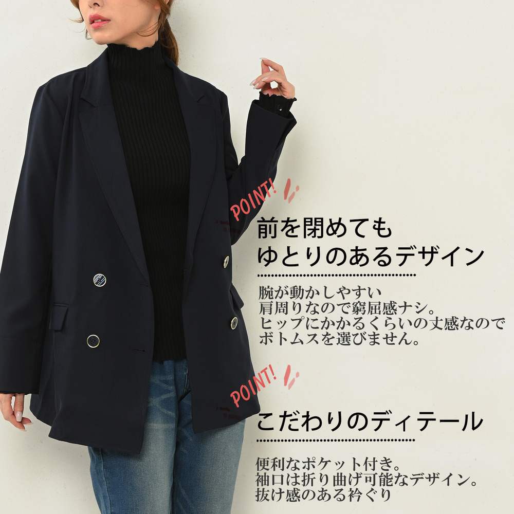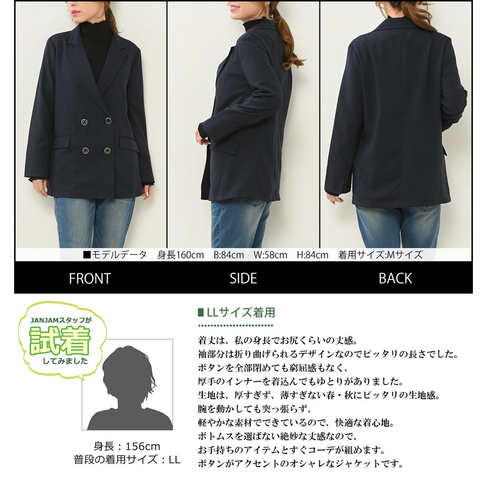 程よいゆったり感で綺麗めカジュアルに演出するダブルテーラードジャケット 大きいサイズ レディース