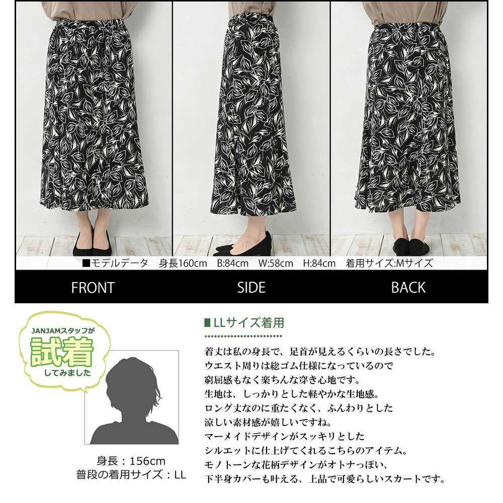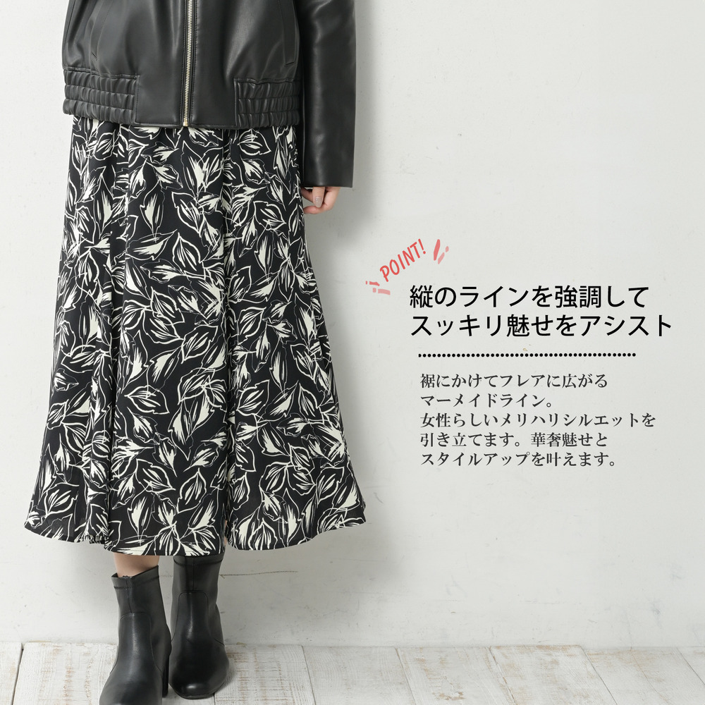 足がすらっと長く見えるリーフ柄マーメイドスカート 大きいサイズ レディース