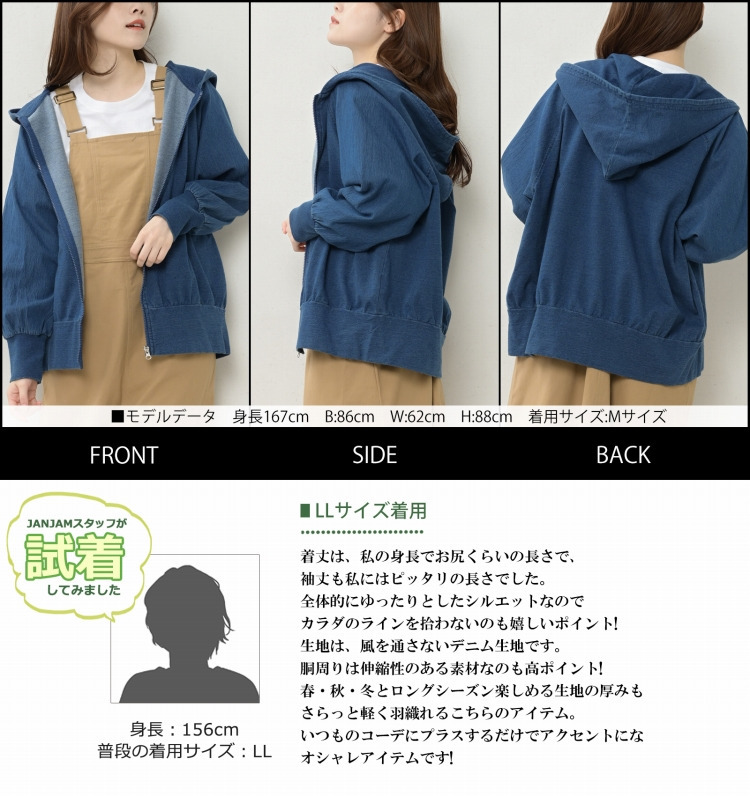 • さらりと羽織れる柔らかデニムパーカー 大きいサイズレディース19
