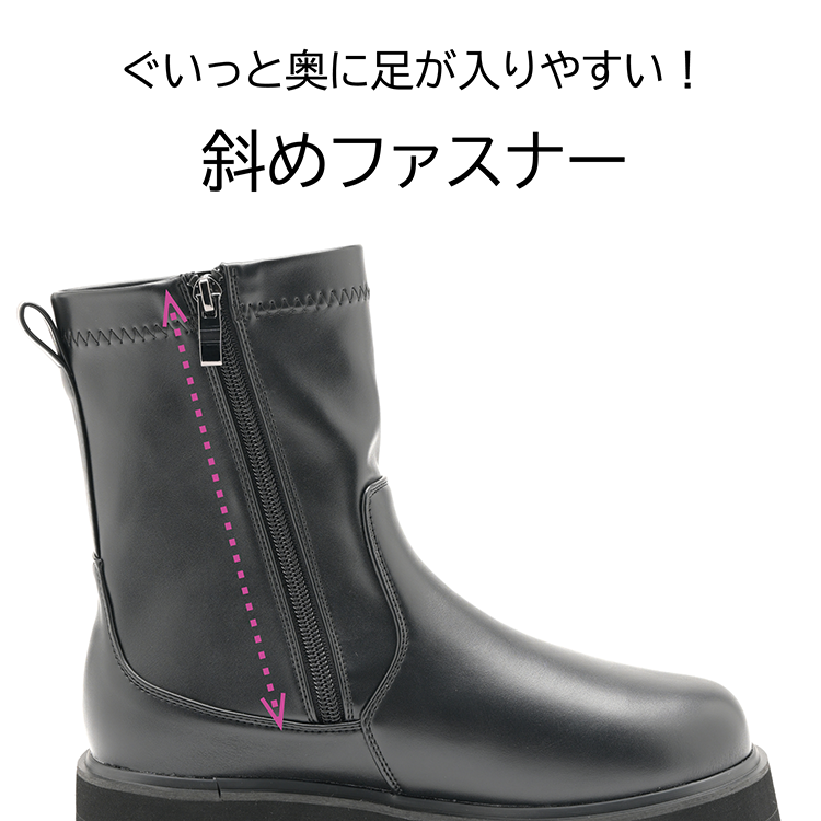 素材 | メイン素材:合成皮革、低反発&高反発インソール、持ちやすいファスナートップ、抗菌消臭中敷き、合成底 |