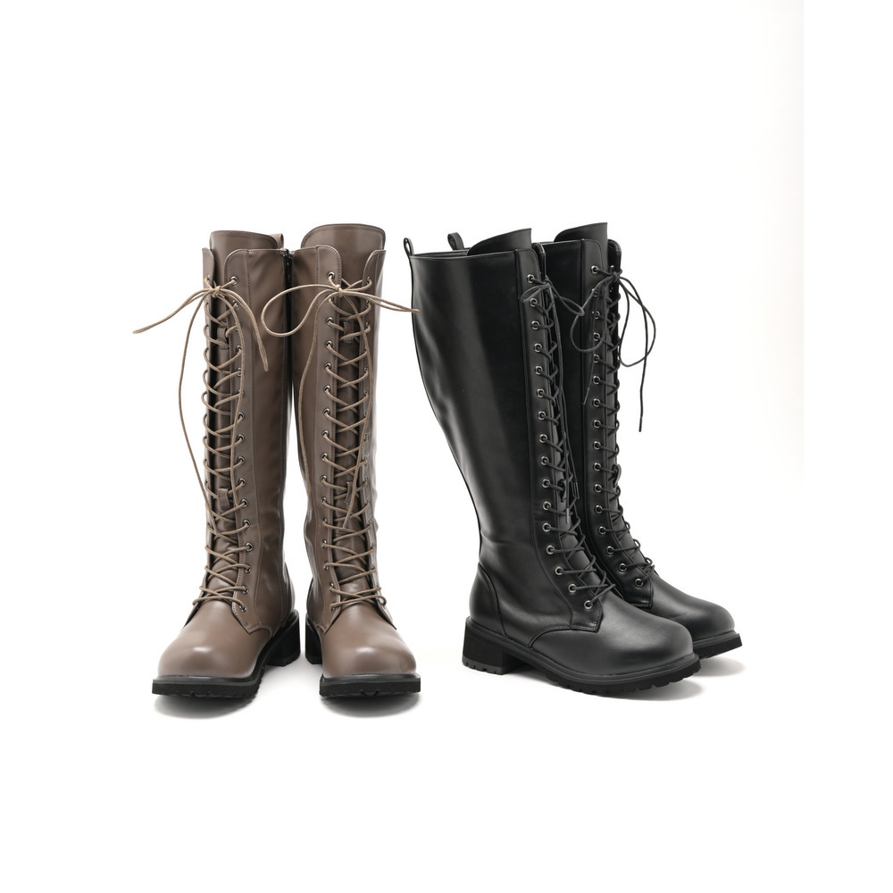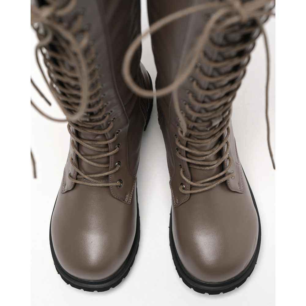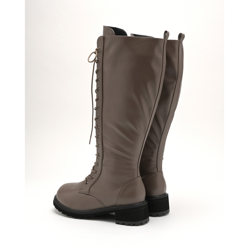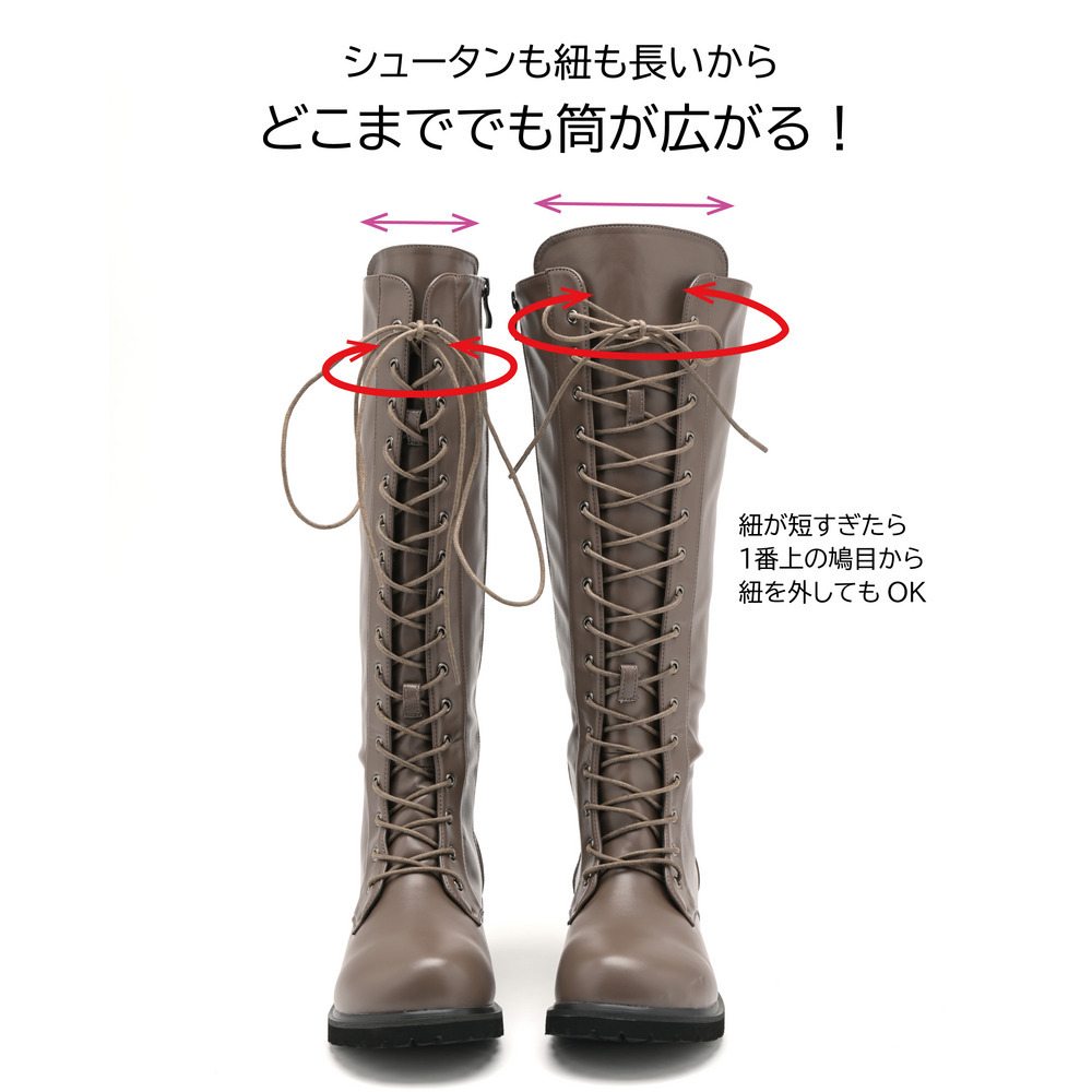 ラ・ファーファ シューズの編み上げブーツはシュータンを通常よりも幅広く設定し、なおかつ紐も長くしているため、色々なふくらはぎの形状に合わせられます。