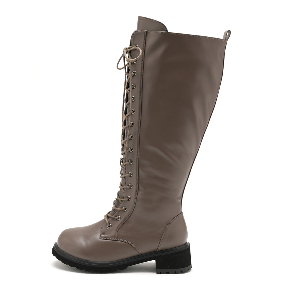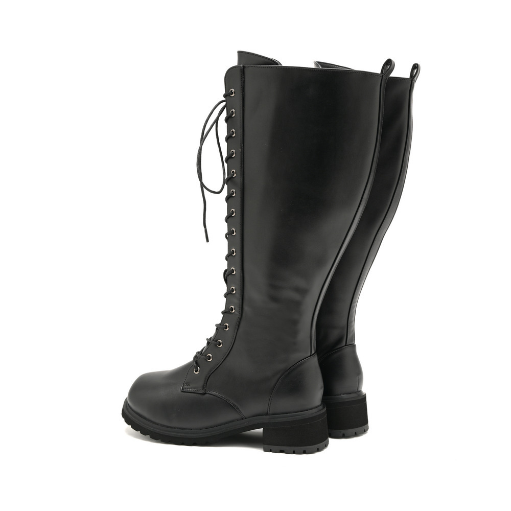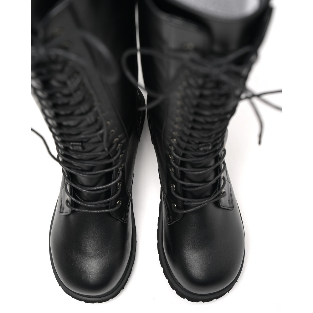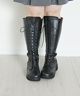 ラ・ファーファ シューズの編み上げブーツはシュータンを通常よりも幅広く設定し、なおかつ紐も長くしているため、色々なふくらはぎの形状に合わせられます。