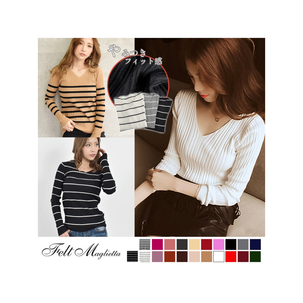 リブVネックニットプルオーバー 大きいサイズ レディース