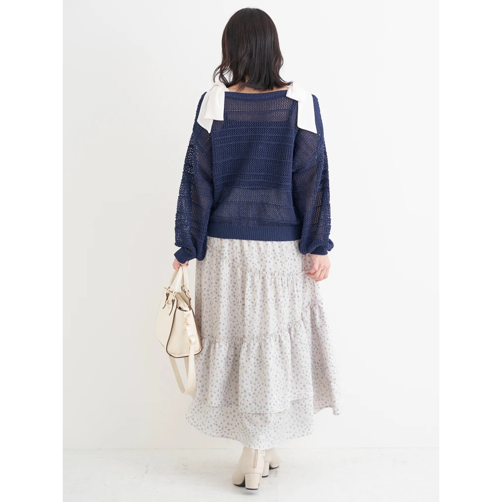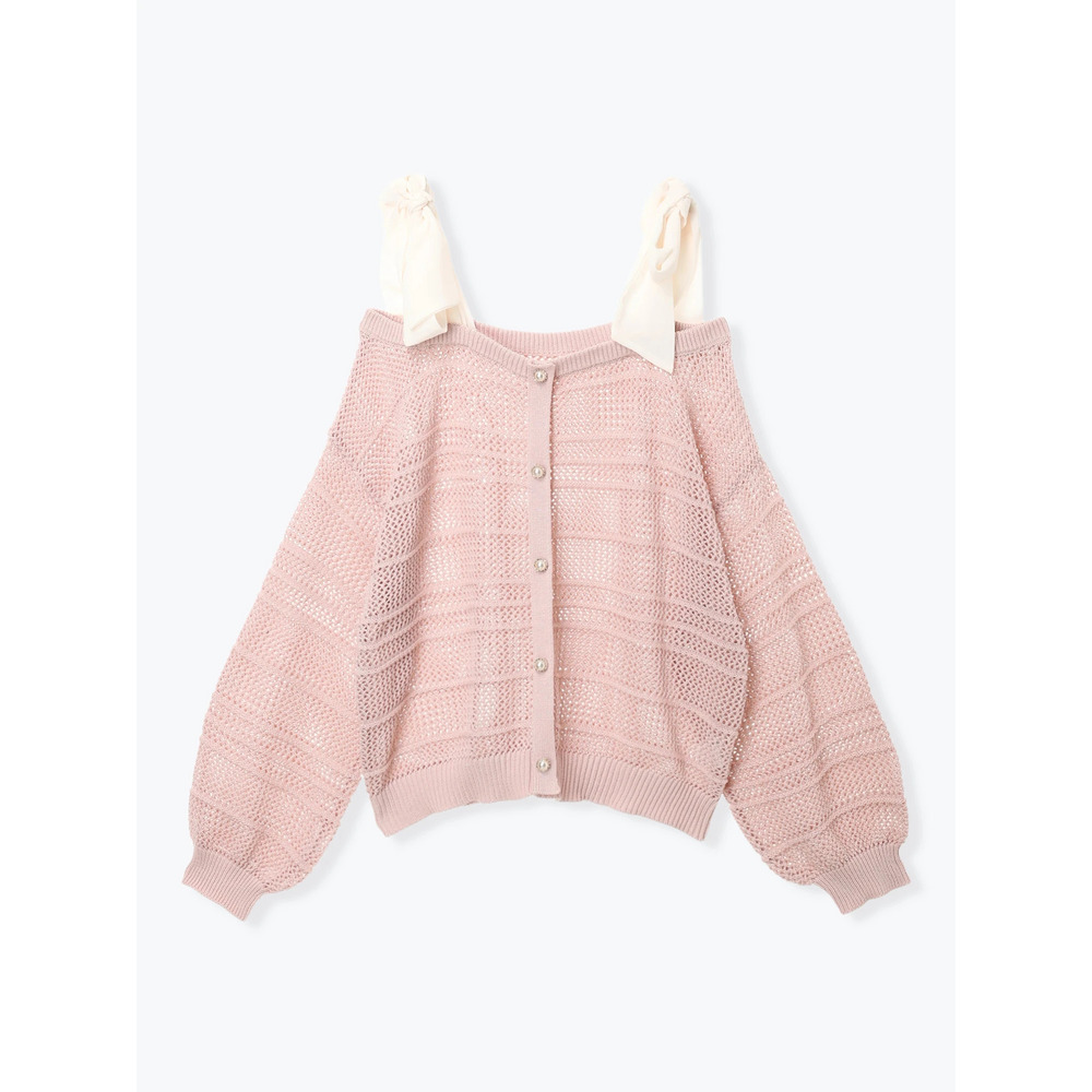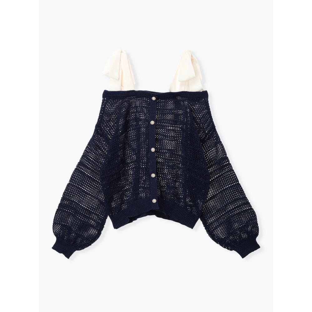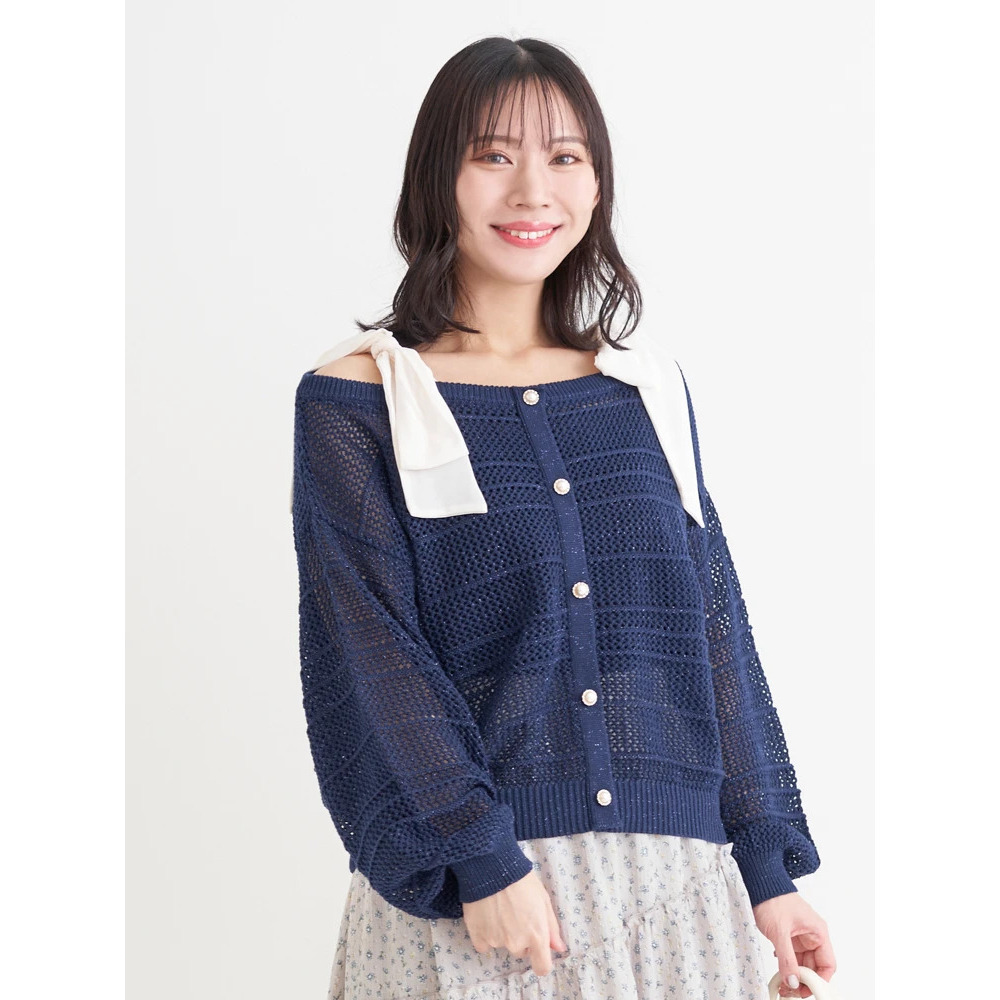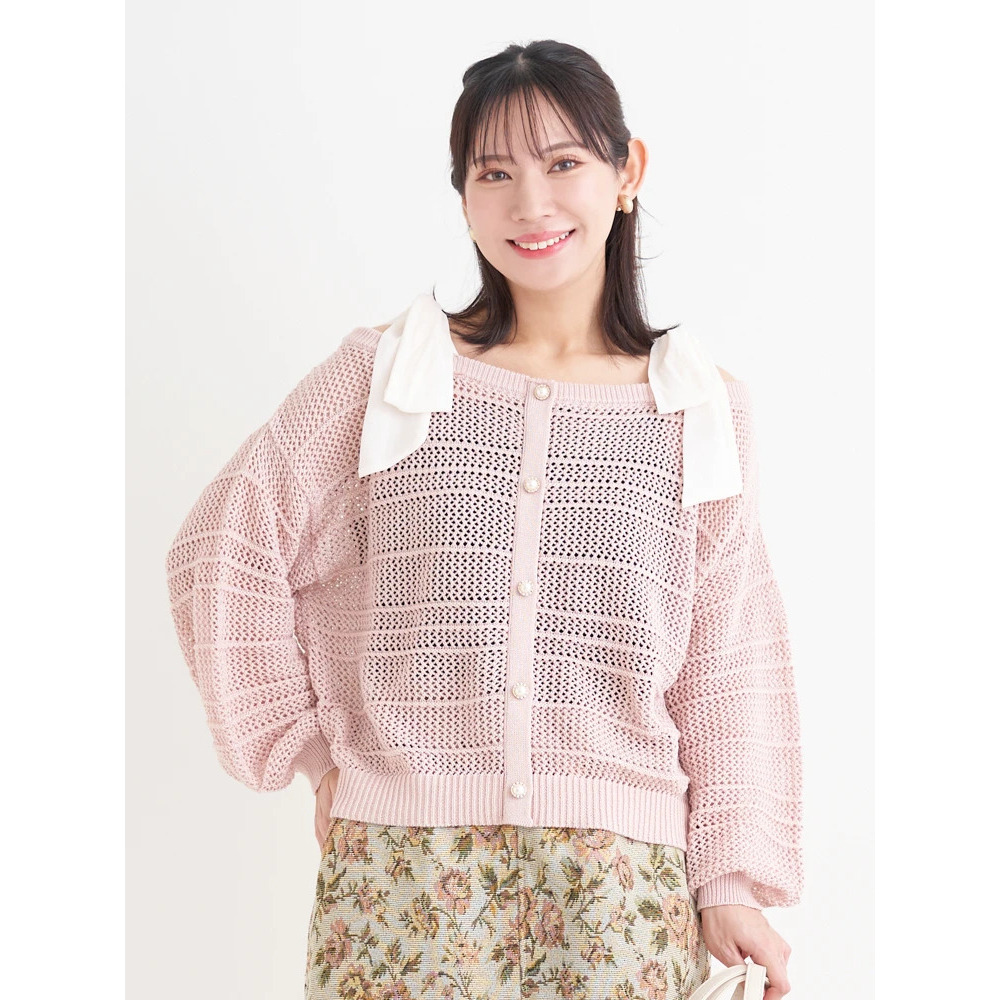 【WEB限定】ショルダーリボンラメ入りオフショルニットトップス