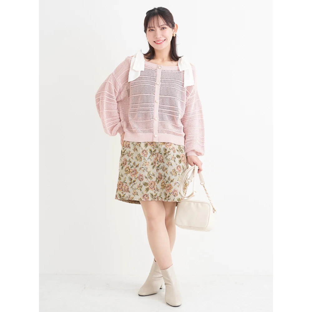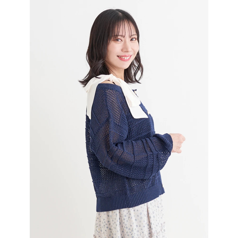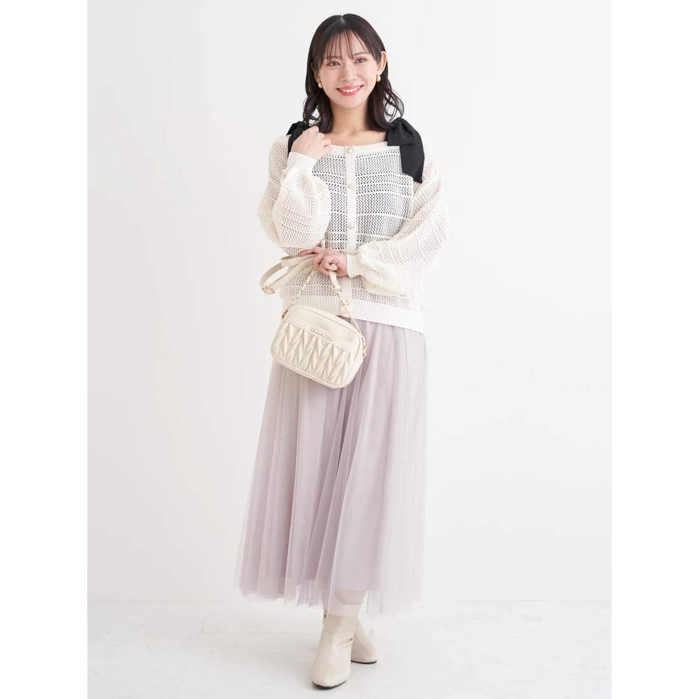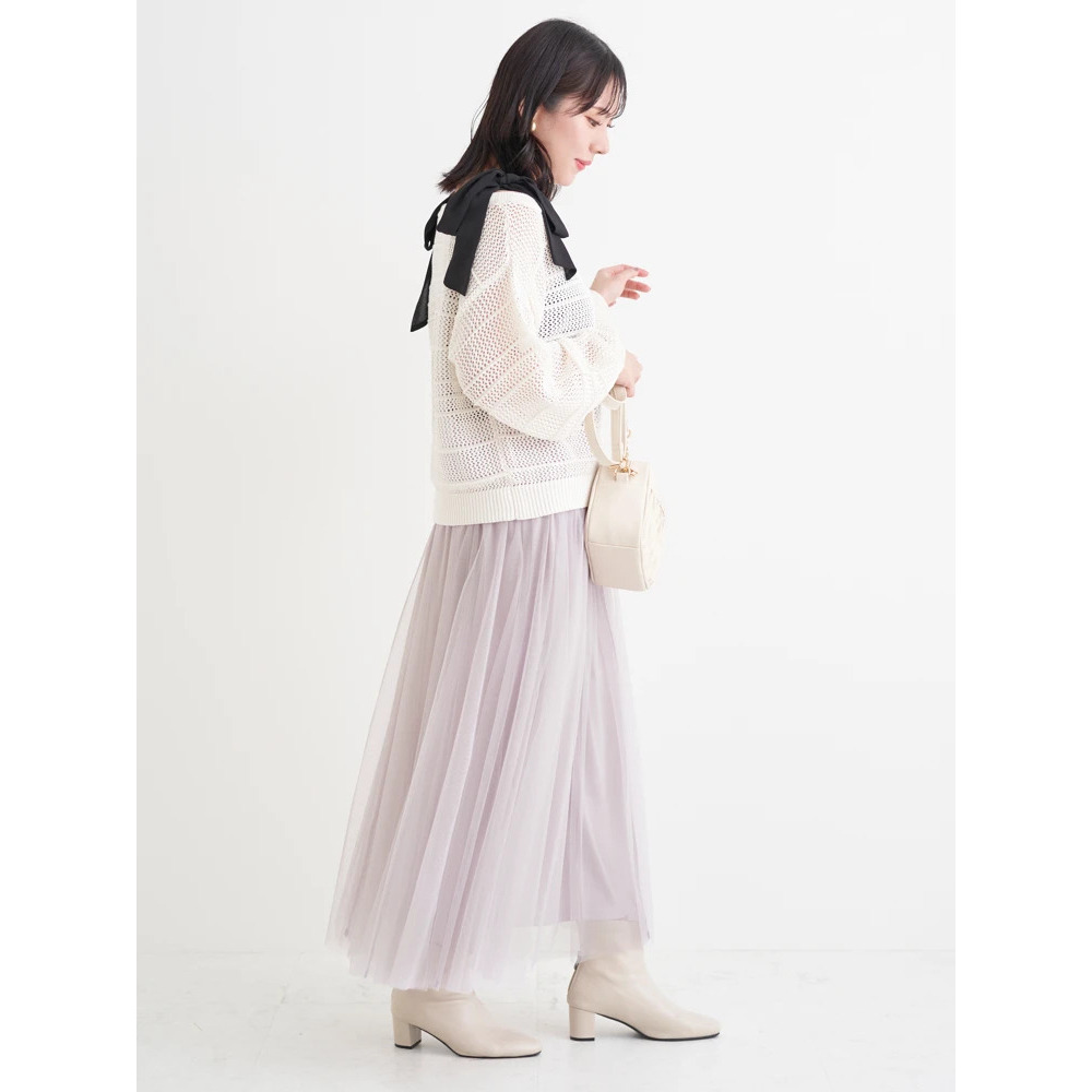 ・ほんのりラメの入った透かし編みニット素材は抜け感も◎。