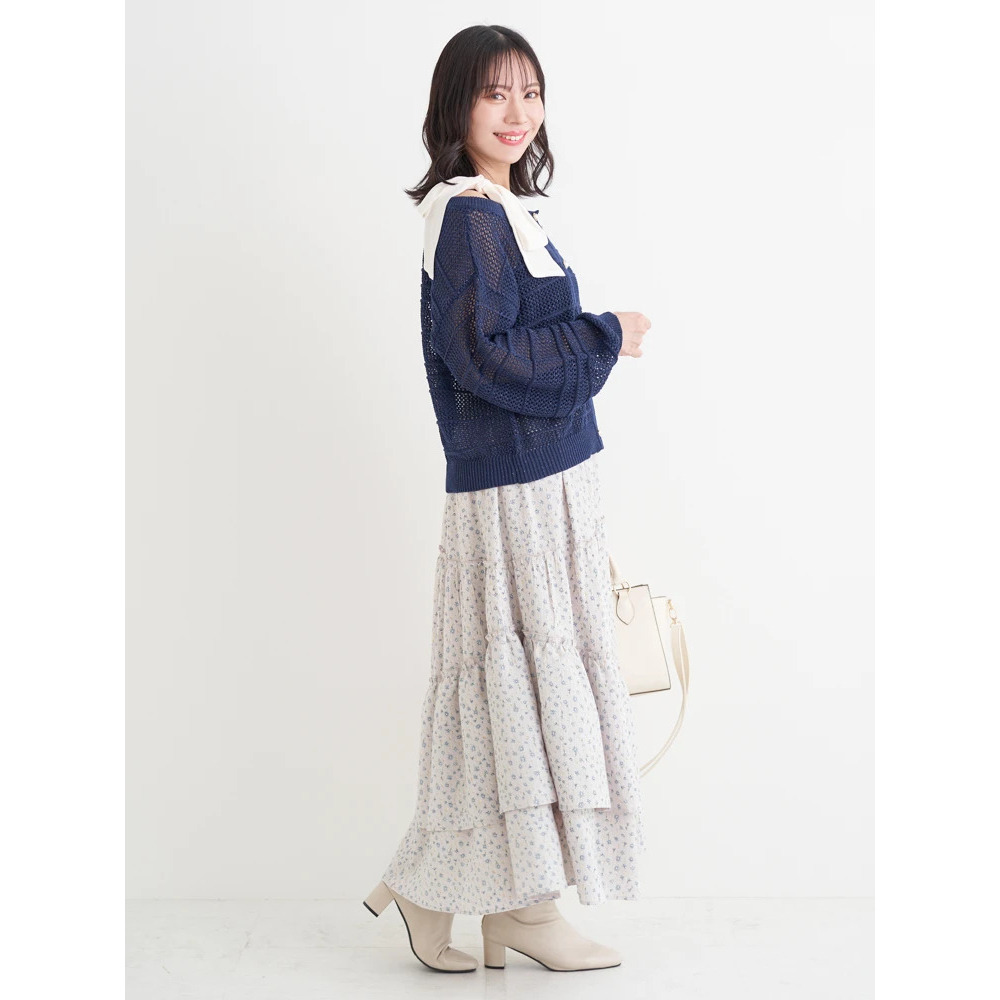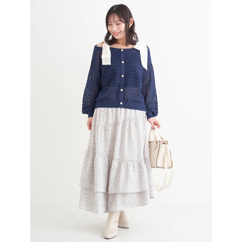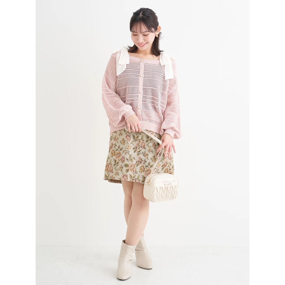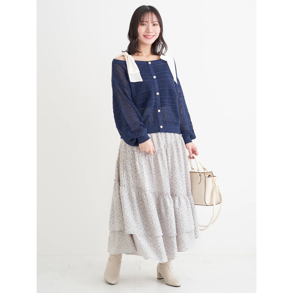 ・ほんのりラメの入った透かし編みニット素材は抜け感も◎。